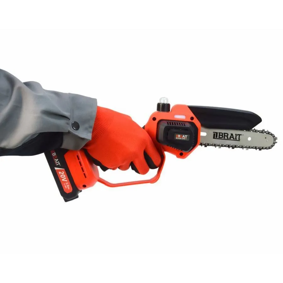 Пила цепная аккумуляторная BCHS20-2NM-1 сочетает в себе сверхкомпактный дизайн, высокую производительность и надежность. Используется на садовых и приусадебных участках для распила стволов, веток деревьев, бревен и других лесоматериалов. Распиловка возможна как в продольном, так и в поперечном направлении. Скорость пиления 6м/сек при работе с сучьями среднего диаметра. Аккумуляторная цепная пила удобно лежит в руке благодаря прорезиненной рукоятке. Для безопасности оператора предусмотрены защита от случайного пуска и защитный кожух цепи. В модели BCHS20-2NM-1 длина шины составляет 6 дюймов ( 15 см ) под цепь из 37 звеньев с шагом ¼. Ее необходимо смазывать каждые 10 - 15 пропилов, т.к. инструмент оснащен ручной смазкой цепи.