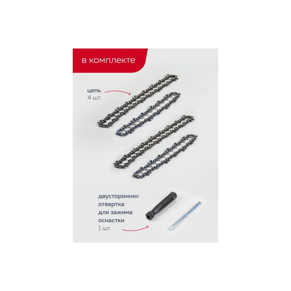 -Цепь (длина 4", 28 звеньев, шаг цепи 1/4", ширина звена 1.1мм, ширина цепи 5/32"(4мм), угол заточки 30 град);