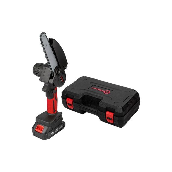 Пила цепная аккумуляторная щеточная от бренда FORCEKRAFT имеет в комплекте 4 цепи, две шины, зарядное устройство и двустороннюю отвертку. Для удобного хранения упакована в кейс. Беспроводная аккумуляторная цепная электропила предназначена для бытового использования, столярных работ. Электропила по дереву станет заменой для ручных строительных инструментов, как ножовка и пила ручная садовая. Эргономичный дизайн позволяет без труда использовать устройство одной рукой, в чем помогает малая масса пилы. Несмотря на компактность и легкость, данная мини-пила без труда справляется со своей задачей. Аккумулятор Li-ion 2000 mАh в комплекте позволяет получить достаточное время работы устройства. Цепная пила сделает вашу работу в саду и на даче намного легче.