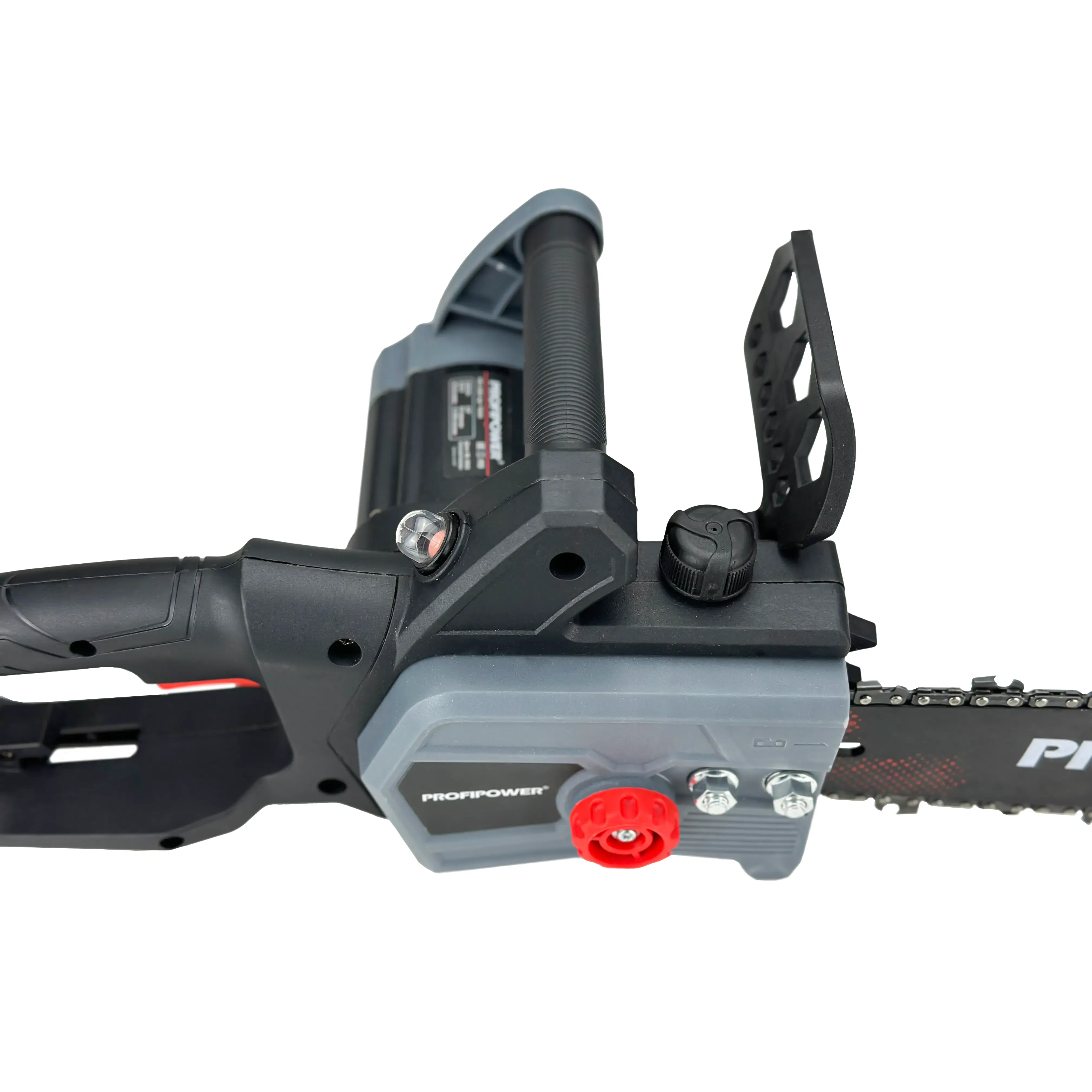 Шестерни из металла. Пила цепная сетевая T0030 PEC-2200 предназначена для распиливания древесины, заготовки дров и выполнения других работ с материалами из дерева. Инструмент разрешается использовать только для резки древесины. Использование цепной пилы не по назначению может привести к опасным ситуациям.Инструмент предназначен для работы в условиях умеренного климата с диапазоном рабочих температур от -10 до + 35 °С и относительной влажности не более 80%, с отсутствием прямого воздействия атмосферных осадков и чрезмерной запыленности воздуха. Вид климатического исполнения изделия- УХЛ 3.1 по ГОСТ 15150- 69 (П 3.2). Корпус изделия обеспечивает защиту инструмента от твердых частиц размером более 12 мм, но не защищает от воды