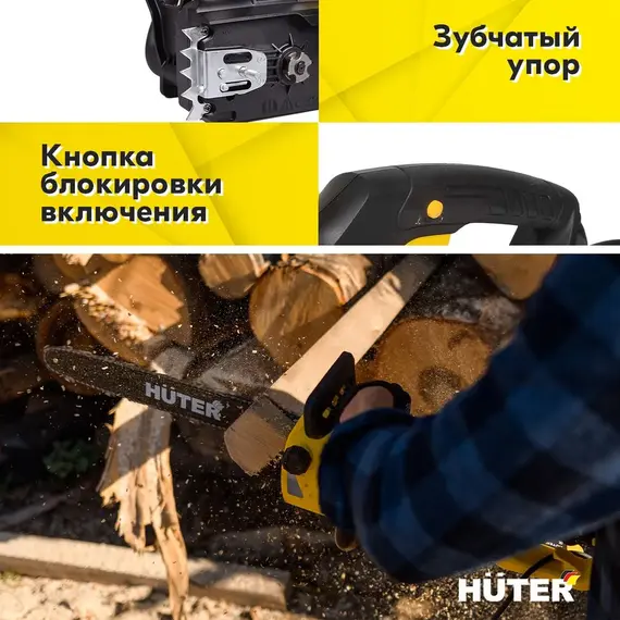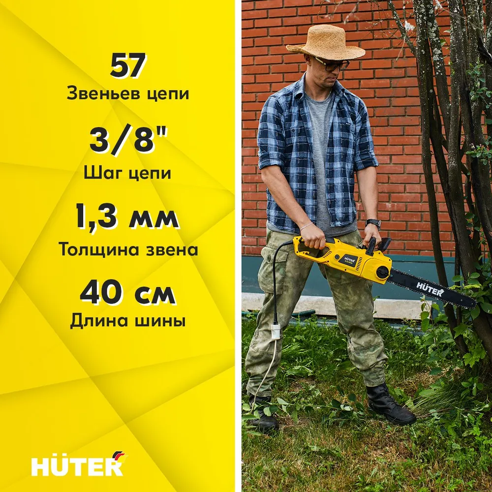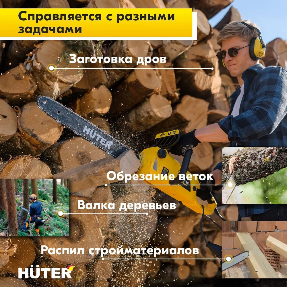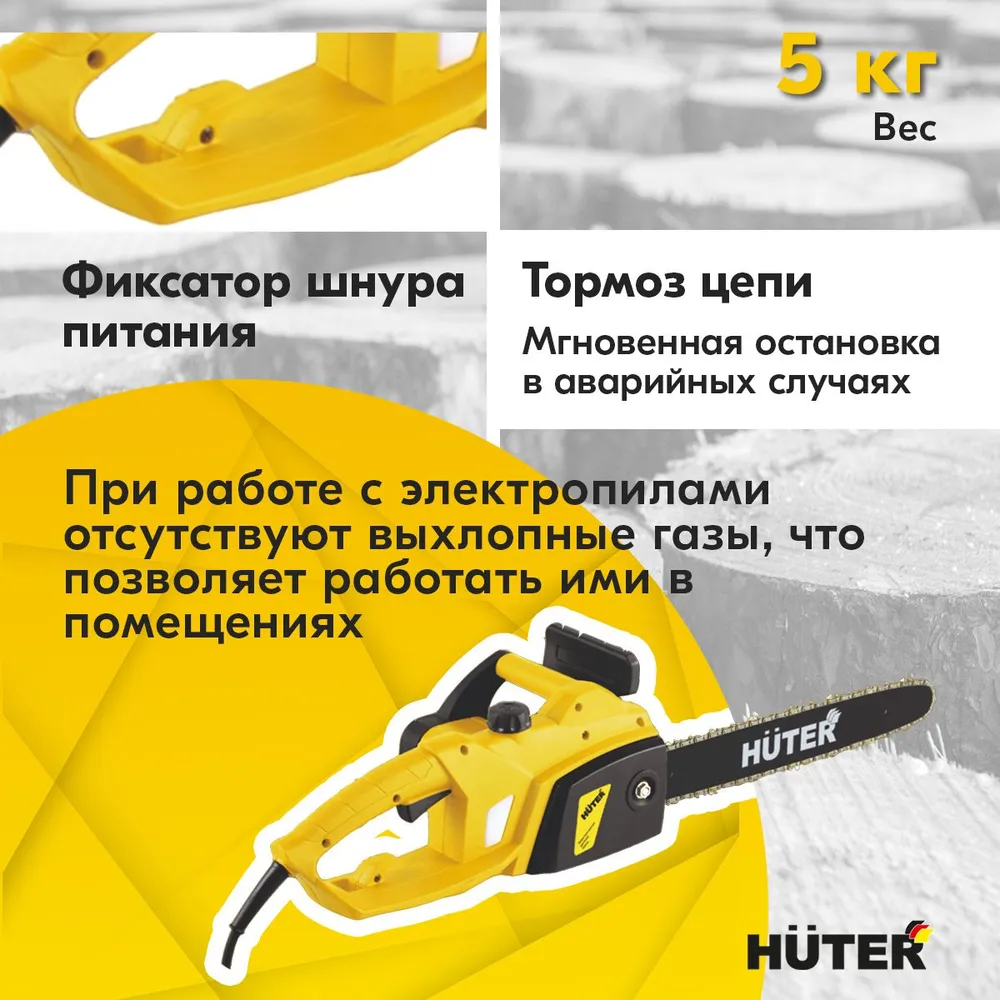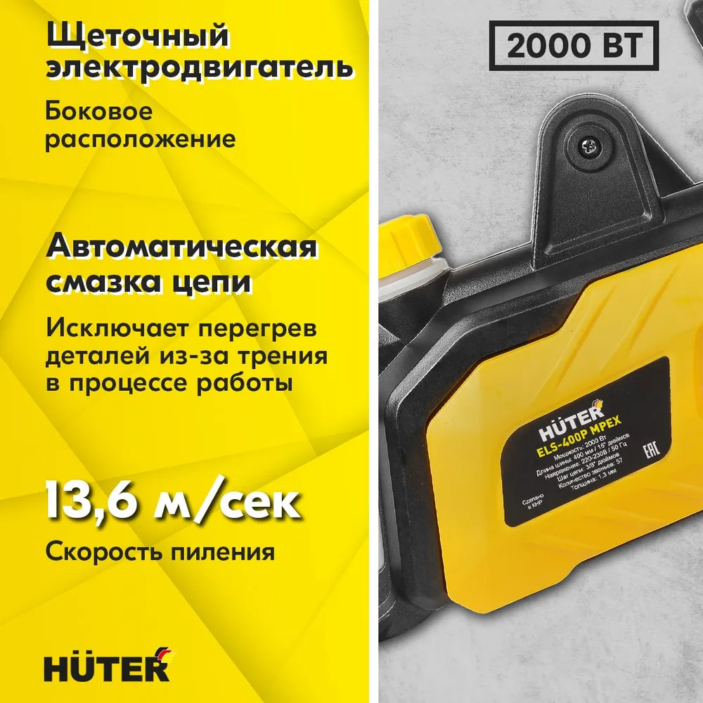 Пила HUTER ELS-400P MPEX-современная электропила, предназначенная для валки леса, заготовки дров, распиловки древесины. В отличие от бензопилы она проще в обслуживании и не выделяет выхлопных газов в процессе работы, а значит может использоваться в помещениях. Также электропила не издает громких звуков, общий уровень создаваемого шума: 64 дБ.