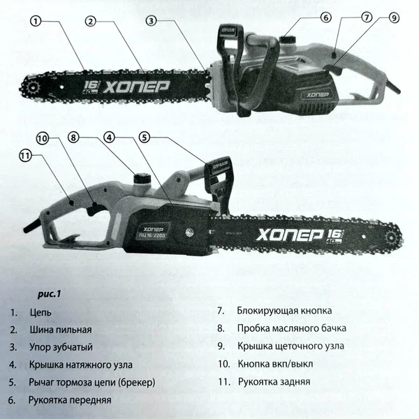 Пила электрическая цепная ХОПЕР ПЦ-16/2200