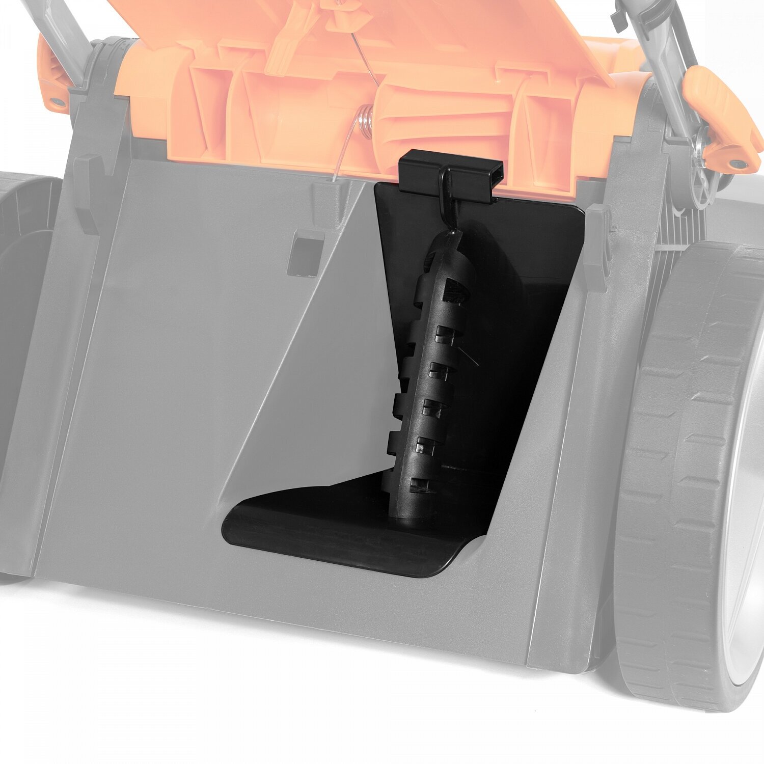 9.Предусмотрены две ручки для удобного перемещения и разгрузки газонокосилки