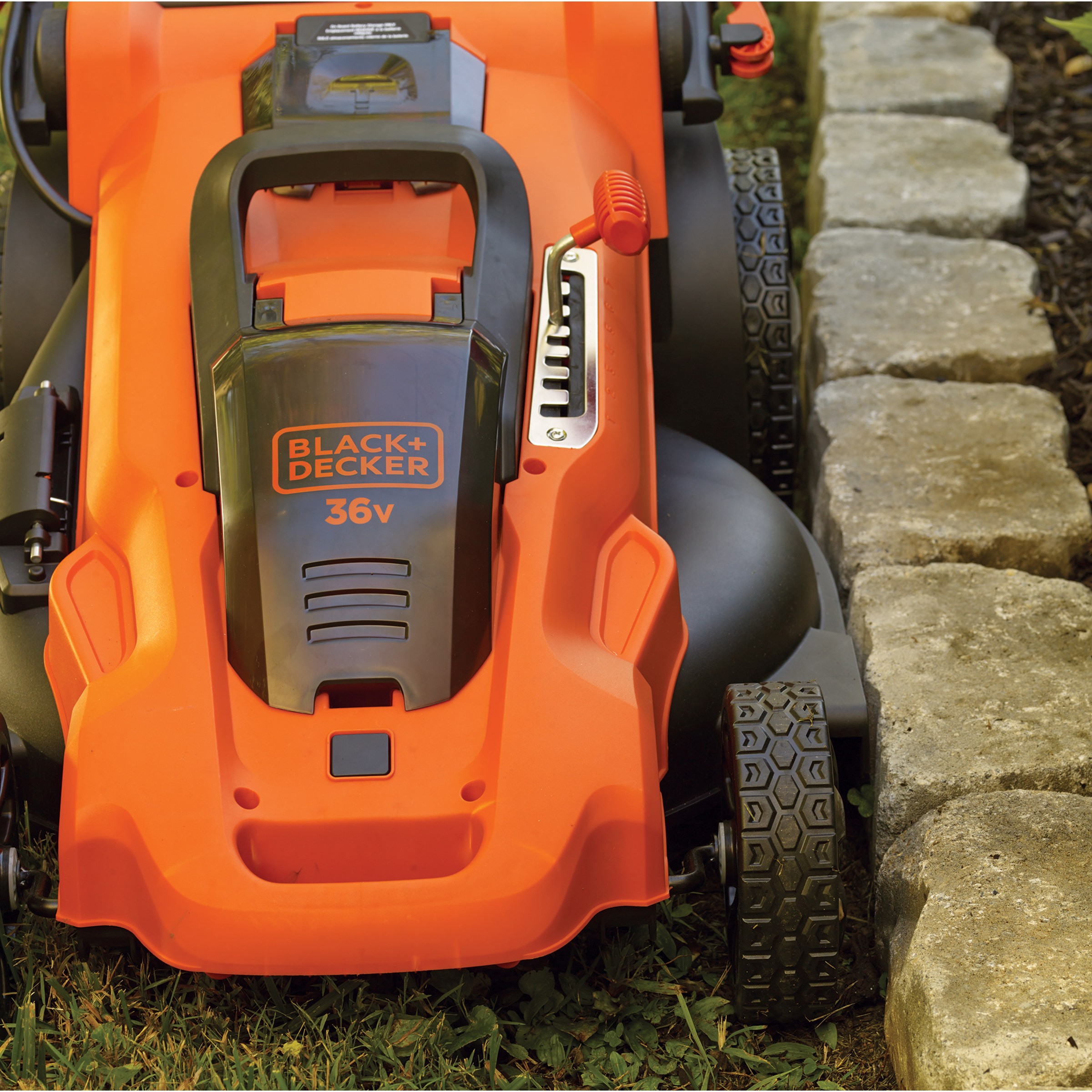 3-в-1: сбор травы в травосборник, выброс на сторону, мульчирование. Работает от батареи 36 Вольт. До 500 м. кв. на одном заряде аккумулятора. Аккумулятор совместим со всей садовой и домашней бытовой техникой BLACK+DECKER платформы 36 Вольт.
