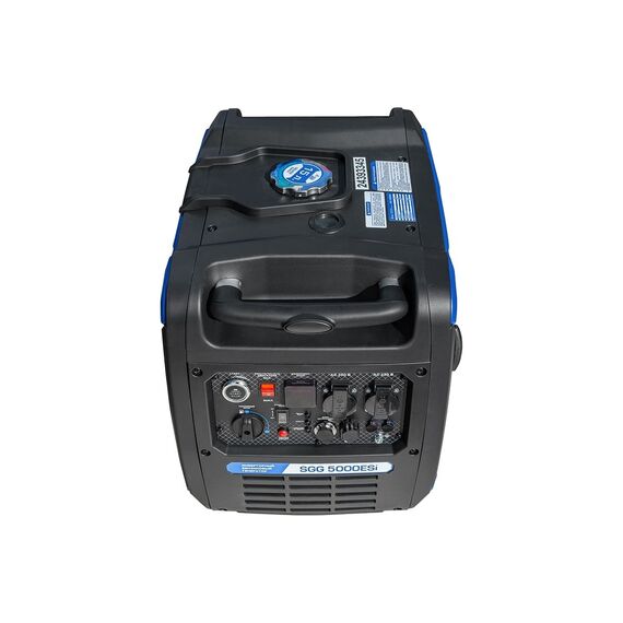 Бензогенератор инверторный SGG 5000ESi в шумопоглощающем кожухе, с электростартом и разъемом для подключения блока автоматики, вырабатывает электричество высокой точности частоты и напряжения.