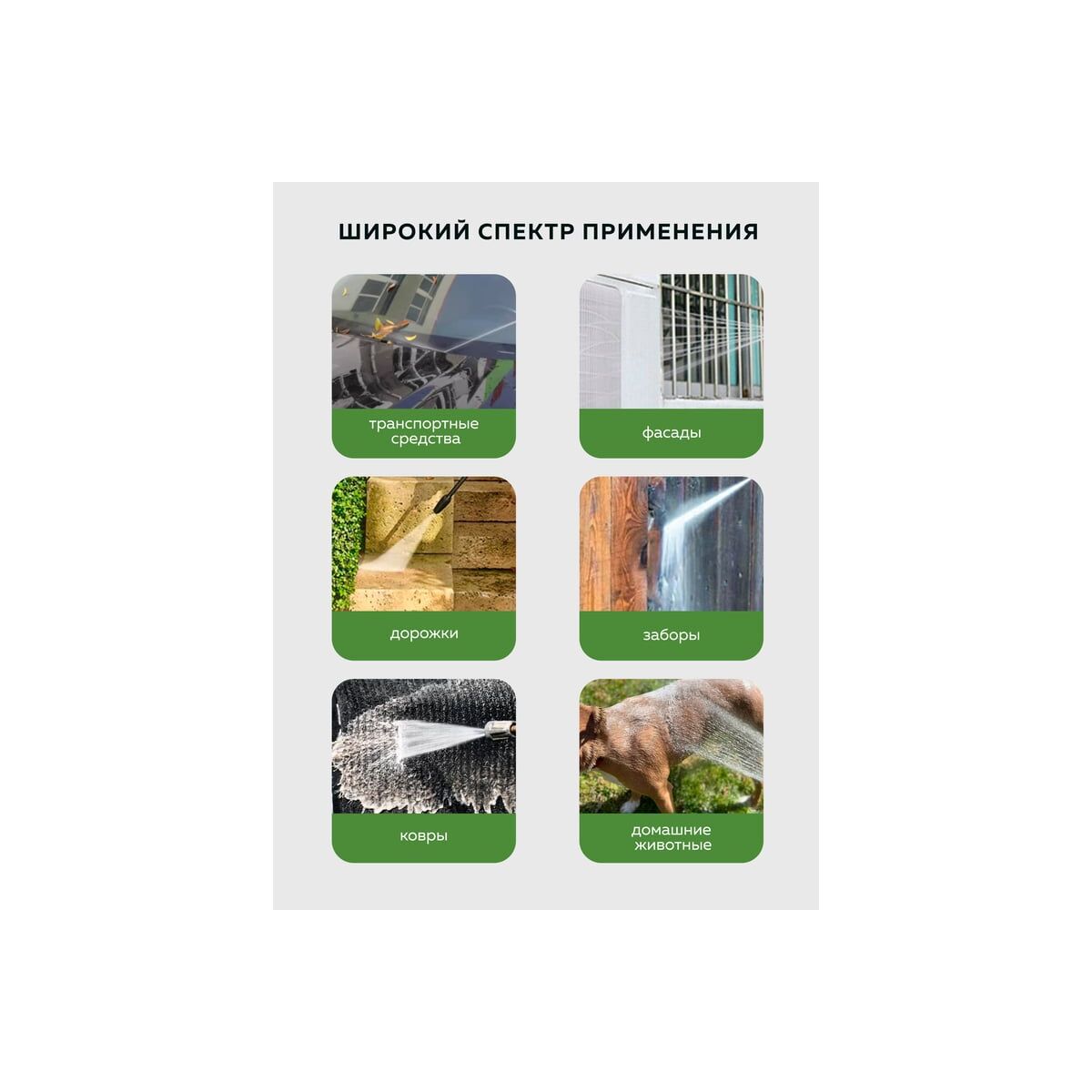 Мойка высокого давления имеет широкий спектр применения: от очистки автомобилей и мотоциклов до очистки фасадов зданий и тротуаров. Она может использоваться как в домашних условиях, так и на промышленных объектах.