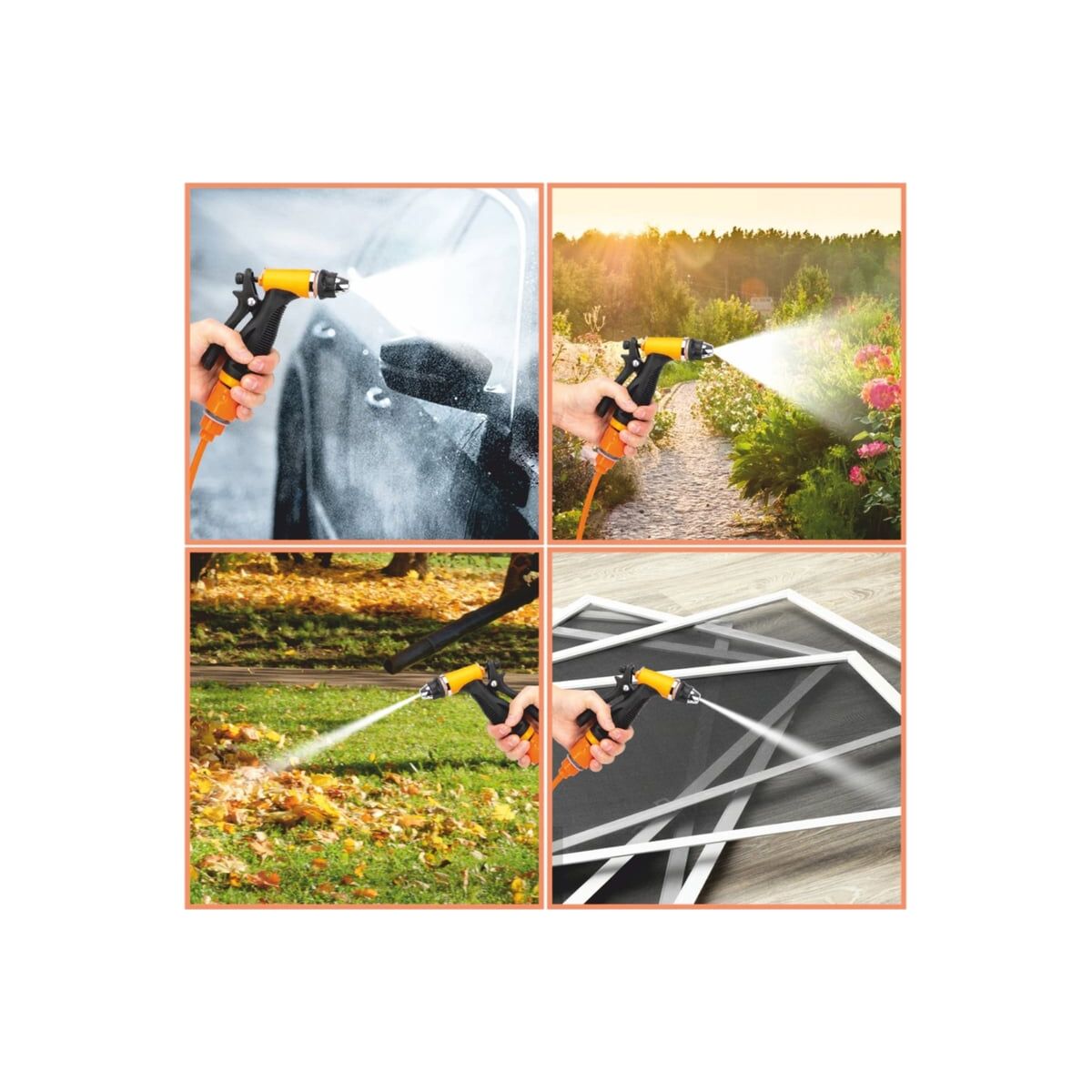 Эффективная работа. Регулировать мощность струи и поток воды можно с помощью вращающейся головки на пистолете.