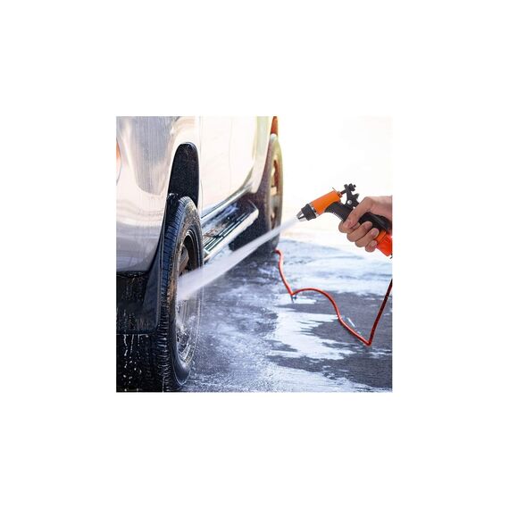 Пистолет автомобильной мойки выполнен из прочного пластика, ручка имеет рельефную прорезиненную поверхность, что позволяет прочно удерживать устройство в руке.