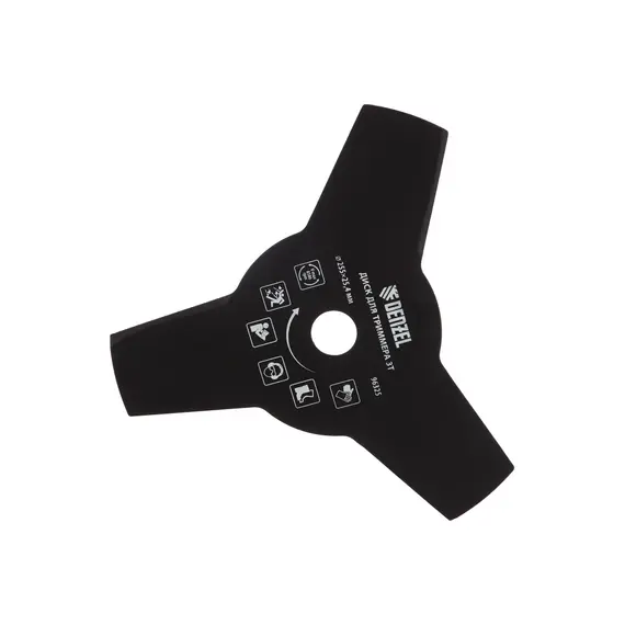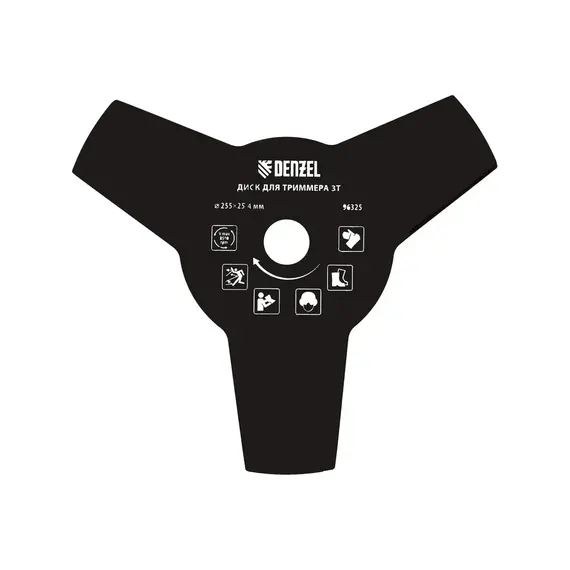 Диск для триммера, 3 лезвия DENZEL 96325 справляется с жесткой травой и мелкой порослью кустарников. Изготовлен из стали толщиной 1,6 мм и окрашен краской.