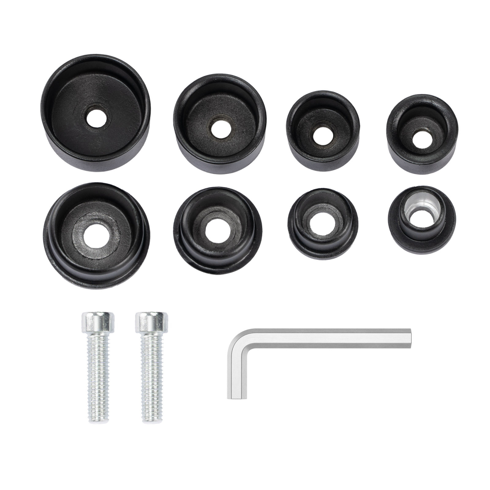 Расширенная комплектация: насадки 16/20/25/32 мм - 4 шт., винт 8x30 мм 2 шт., ключ, кейс металлический подставка, инструкция.