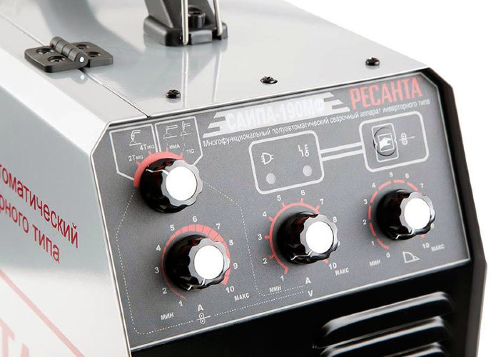 Описание: Сварочный аппарат инверторный полуавтоматический РЕСАНТА САИПА-190МФ многофункциональный предназначен для ручной электродуговой сварки постоянным током проволокой в среде защитного газа - углекислого, аргона или их смеси. Применяется для высококачественной сварки низкоуглеродистых сталей.