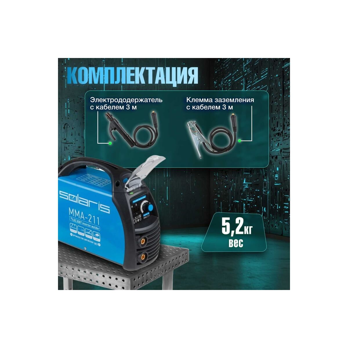 - Электрододержатель с кабелем 3 метра;