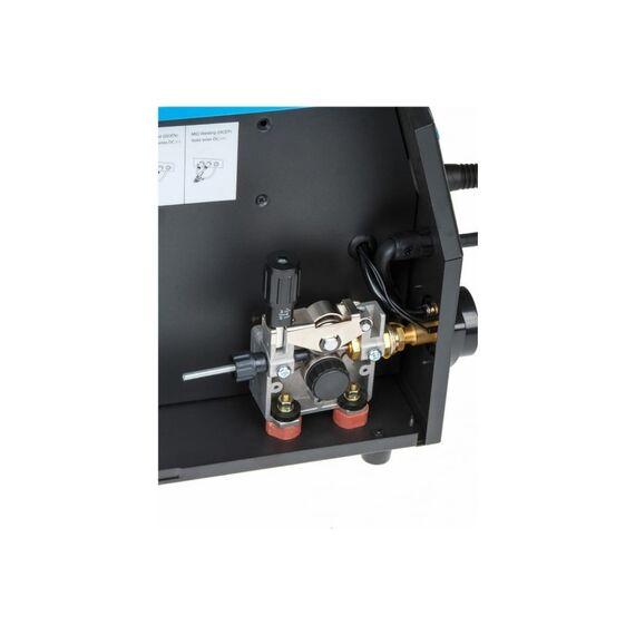 Имеется удобная рукоять для переноски. Суммарно малый вес всей конструкции существенно облегчает эксплуатацию. Имеются встроенные ролики для подачи проволоки.
