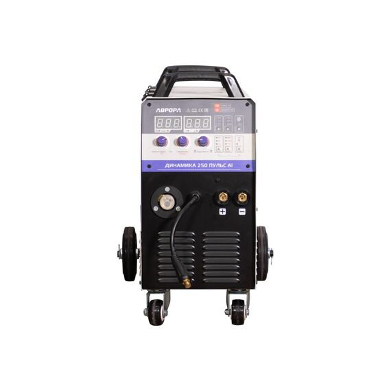 АВРОРА Динамика 250 ПУЛЬС Al –«Умный» инвертор с полностью цифровым управлением на базе ARM платформы 32 бит 72МГц. Однофазный источник предназначен для полуавтоматической MIG-MAG сварки,для ручной дуговой сварки электродом MMA, а также для аргонодуговой сварки в режиме LIFT TIG DC. Аппарат выполнен в едином корпусе со встроенным подающим механизмом, рассчитанным для использования катушек D200 и D300 (5-20кг). Тележка с подставкой под баллон и высокая компоновка аппарата существенно облегчают работу сварщика. Аппарат ориентирован на грузовые и легковые автосервисы, небольшие производства и мастерские, которым приходится решать сложные сварочные задачи, в условиях ограничений возможностей подключения только к однофазным сетям питания.Важной особенностью аппарата является высокая производительность Динамики 250 ПУЛЬС Al. ПН аппарата на максимальном токе и +40°С составляет 40%. Это значит, что при нормальных температурах в 20-25С, сварщик сможет эксплуатировать инвертор даже на 250А на протяжении длительного времени, не опасаясь перегрева аппарата.Динамика 250 ПУЛЬС Al может быть настроена сварщиком для работы в ручном или синергетическом режиме управления.Честные характеристики аппаратов АВРОРА помогут справиться с любой сварочной задачей.Импульсный режим полуавтоматической сварки ориентирован на работу с алюминием. Динамика отлично справляется с удалением оксидной плёнки с поверхности металла и обеспечивает равномерное расплавление кромок свариваемых деталей вдоль всего шва.