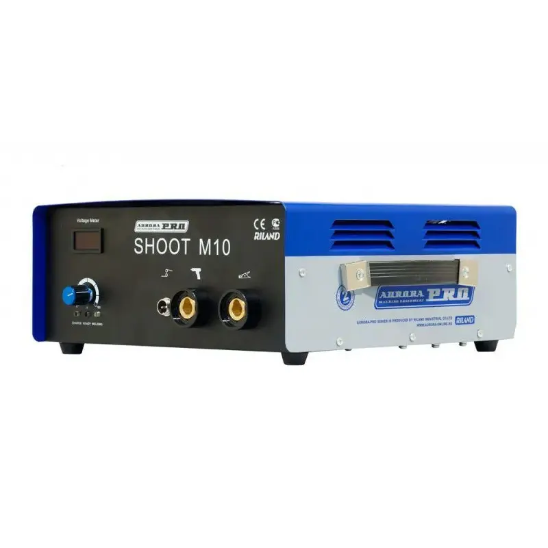 Аппарат точечной сварки Aurora PRO SHOOT M10 10065 - устройство, которое используется для приваривания шпилек и прутов к листу металла. Агрегат уверенно работает с алюминием, а также нержавеющей и мягкой сталью. Преимуществом модели является отсутствие видимых сварочных швов, отсутствие деформации и быстрота сварки. Установка позволяет приваривать шпильки длиной до 150 мм, свыше этого показателя необходимо воспользоваться специальным шпилечным пистолетом. Производительность оборудования - от 10 до 20 штук шпилек в минуту. Диаметр шпильки - 4-10 мм. Аппарат точечной сварки оснащается современными конденсаторными батареями. Толщина металлической заготовки, к которой привариваются шпильки, не имеет значения.
