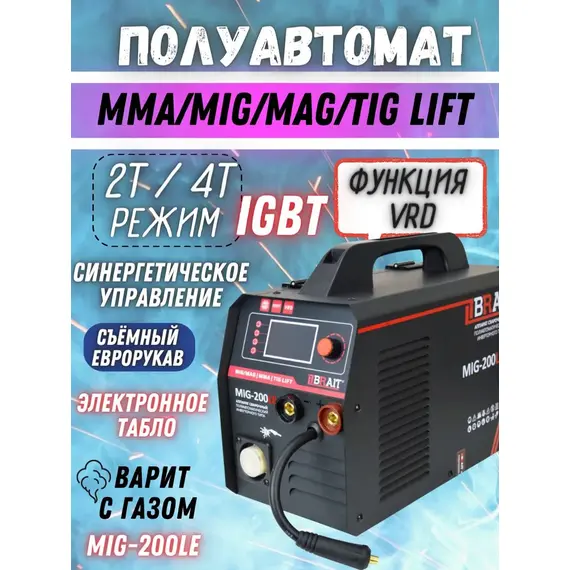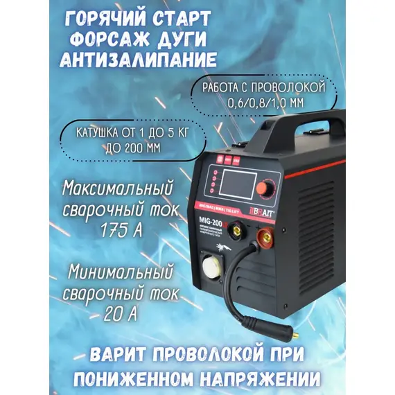 Особенности: Инверторный, Горячий старт, Антизалипание электрода, Форсаж дуги, Цифровой манометр