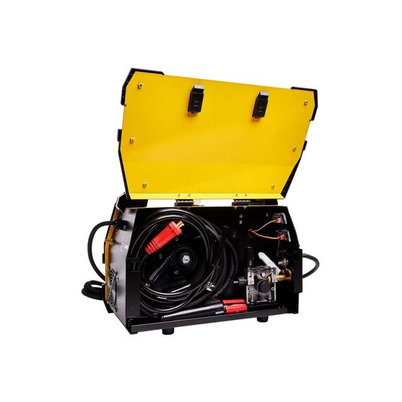 Модель подходит для работы с омедненной проволокой в среде защитных газов. Также можно использовать флюсовую проволоку. Комбинация типов упрощает сварку сталей, цветных металлов и сплавов.
