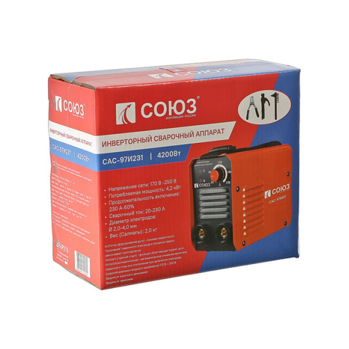 Сварочный инвертор СОЮЗ САС-97И231 — компактный производительный аппарат с простым управлением и универсальным подключением.