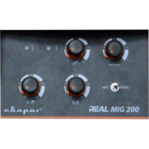 3.Для визуального контроля работы на передней панели Сварог MIG 200 REAL N24002N 95727 располагаются индикаторы сети и перегрева.