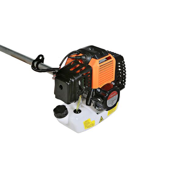 Предусмотрена возможность продольной регулировки рукояти, а также регулировка проушины крепления ремня, что позволяет настроить бензокосу под конкретного пользователя. Легкость запуска инструмента гарантируют механизм облегченного старта со специальной дополнительной пружиной и праймер. Модель проста в обслуживании и эксплуатации и не вызовет затруднений даже у пользователей не обладающим достаточными навыками работы с бензокосами. Инструмент имеет расширенную базовую комплектацию, куда входят ременной подвес (через одно плечо), косильная головка для лески и трехзубый нож.