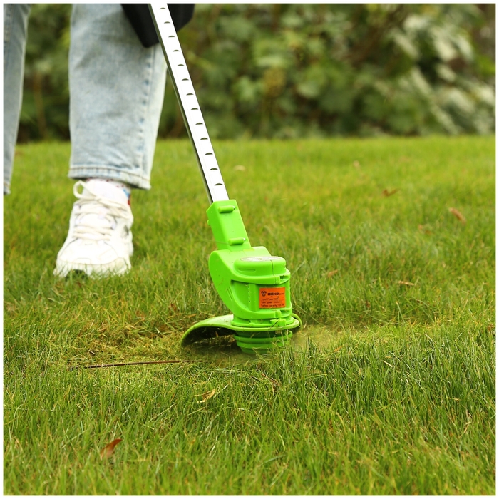 Триммер садовый аккумуляторный DEKO DKTR12 - компактная модель, удобная для скашивания травы в труднодоступных местах, вдоль заборов, клумб, подравнивания газонов, краев садовых дорожек. Оснащен телескопической штангой для комфортной работы. Технические характеристики: Напряжение аккумулятора 12 В; Мощность 300 Вт; Скорость холостого хода 10000 об/мин; Емкость аккумулятора 1500 мАч