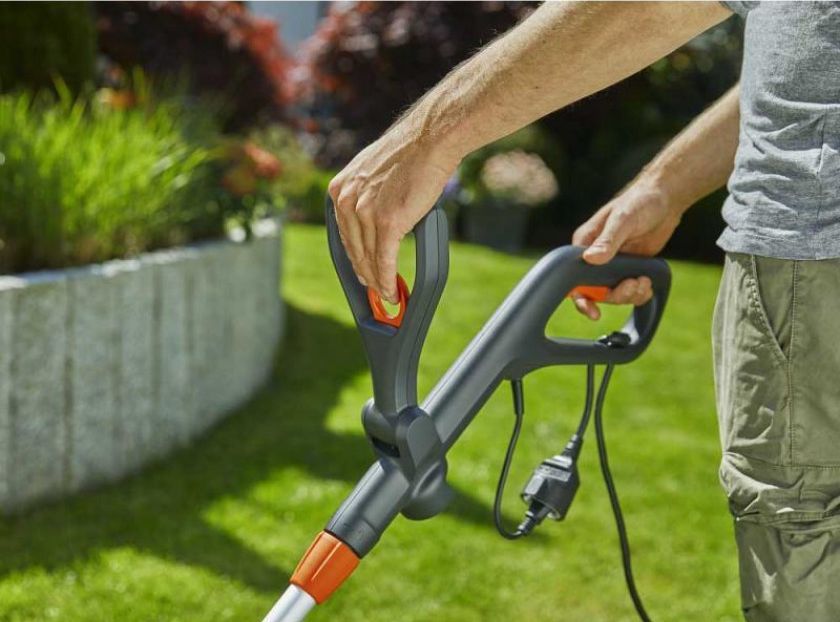 Особенности: Регулировка дополнительной рукоятки обеспечивает удобство в работе, а телескопическую штангу можно отрегулировать в соответствии с вашим ростом. Головку можно наклонить или установить в рабочее положение под углом 0, 10 или 60 градусов. Функция обработки кромок в вертикальном положении.