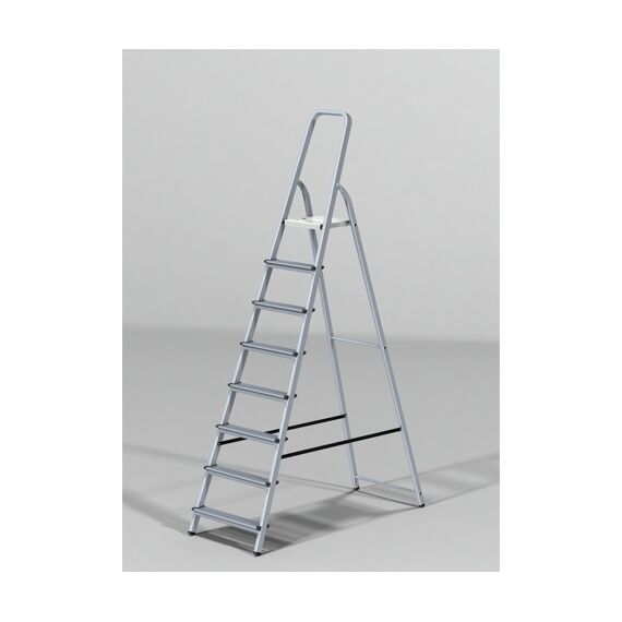 Высота до площадки - 169 см, общая высота - 242 см; макс. нагрузка -150 кг. Прочный алюминиевый профиль, надежное соединение ступеньки с профилем, нескользящая рифленая площадка и ступени, нескользящие башмаки, малый вес.