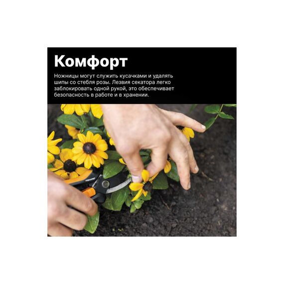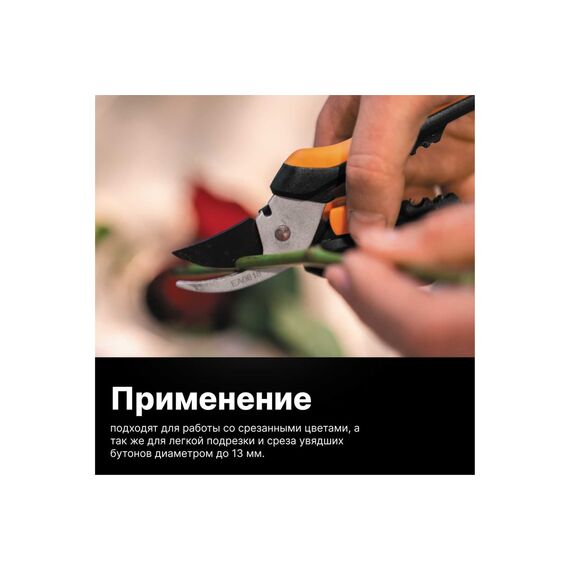 Ножницы для цветов Fiskars SP14 1051601 используется для ухода за садовыми растениями. Лезвия изготовлены из нержавеющей стали, что гарантирует долгий срок службы. Антифрикционное покрытие обеспечивает легкое срезание стеблей диаметром до 13 мм. Эргономичные рукоятки с покрытием SoftGrip комфортно лежат в руке. Для безопасного хранения и транспортировки инструмента предусмотрен фиксатор лезвий.