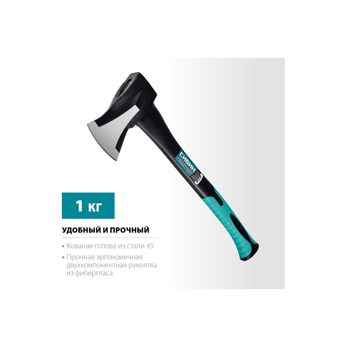 Топор-колун СИБИН Ушастый Фибергласс 1000/1400 г, 450 мм 2083-10 - надежный кованый инструмент для работы с древесиной. Предназначен для рубки, колки и тески древесины.