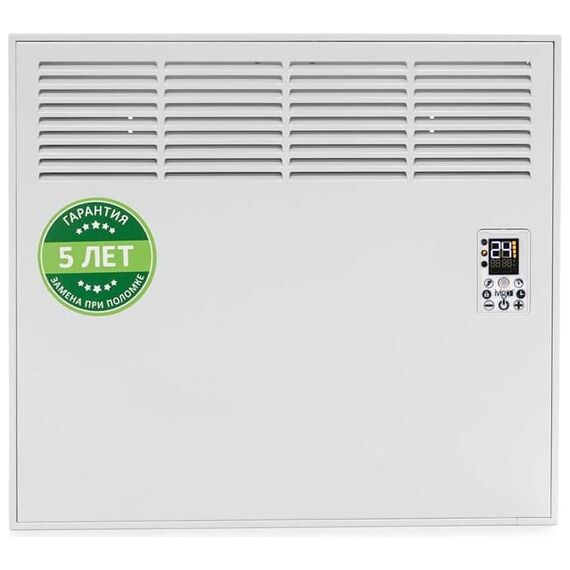 Обогреватель оснащен датчиком температуры, который находится внутри корпуса. Он позволяет не только мониторить температуру в помещении, но и выводит ее на экран прибора. Конвектор можно отрегулировать на поддержание температуры от 6 до 30°С.