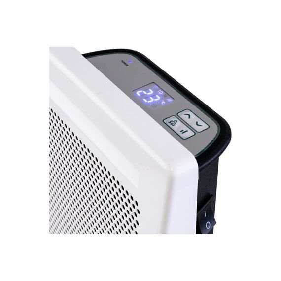 Конвектор оснащен Wi-Fi подключением. Управление осуществляется через мобильное приложение Smart Life или с электронной панели прибора. Модель работает по принципу естественной конвекции. Холодный воздух, проходя через прибор и его нагревательный элемент снизу вверх, нагревается и выходит сквозь решетки-жалюзи и отверстия в корпусе, моментально начиная обогревать помещение.