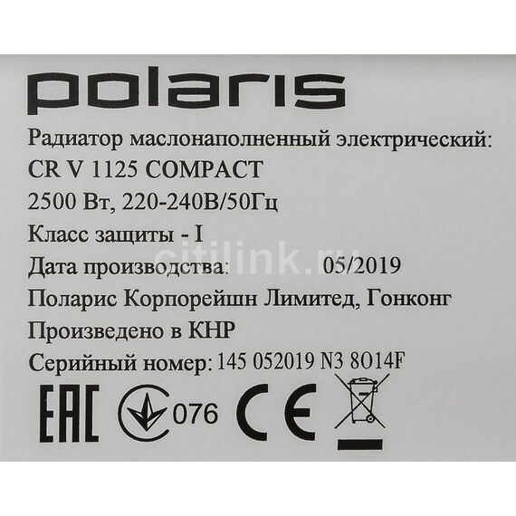 Радиатор масляный Polaris Compact CR V 1125 белый