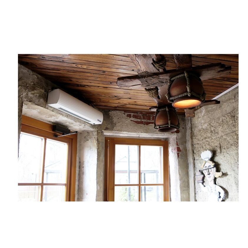 Компактная тепловая завеса для проемов высотой до 1.5 метров. К корпусу завесы подключен питающий кабель длиной 1.6 метра, с евровилкой. Размеры корпуса 705 x 140 x 130 мм, позволяют разместить воздушно-тепловую завесу в ограниченном пространстве над окнами выдачи таможенных пунктов, охраны, пекарен, бистро, магазинов, киосков .Верхнее всасывание воздуха обеспечивает чистоту передней панели. Устройства управления встроены в корпус.