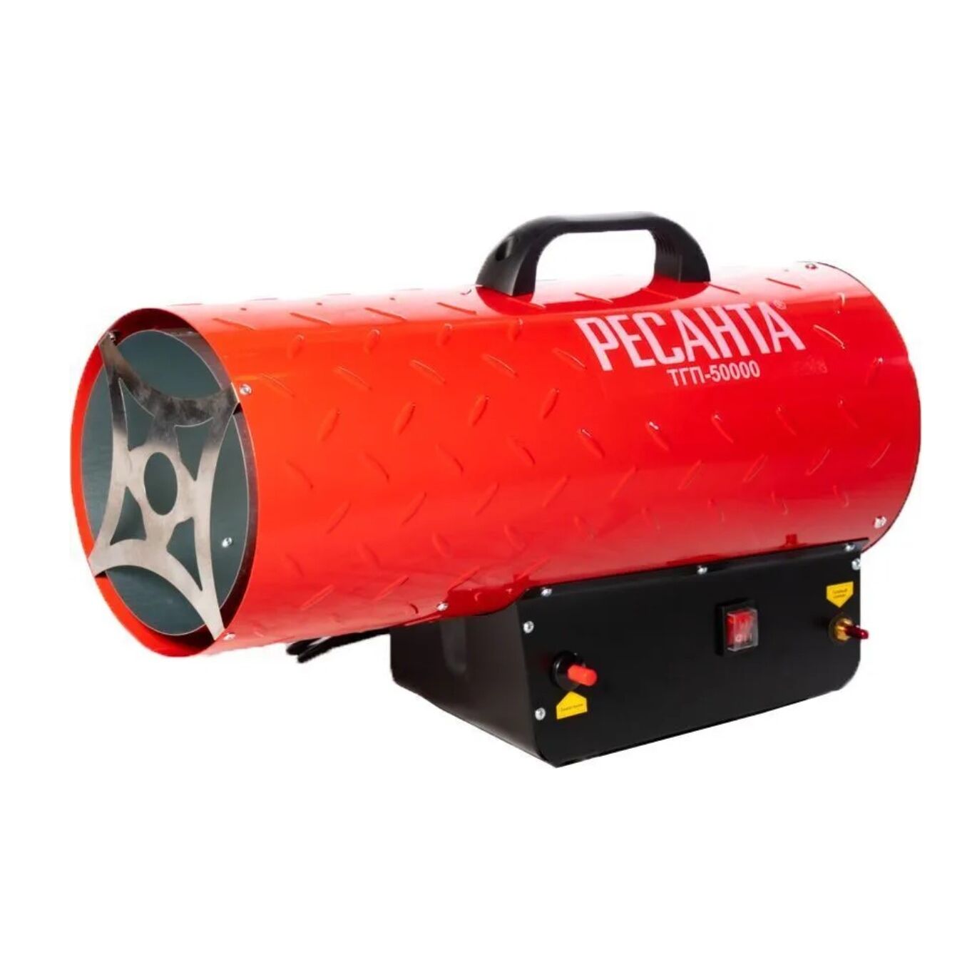 Газовая тепловая пушка РЕСАНТА ТГП-50000 – воздухонагреватель, работающий на сжиженном газовом топливе. Топливо необходимо для получения горячей атмосферы в камере сгорания, а электроэнергия, подводимая к устройству, необходима для питания вентилятора, нагнетающего воздух, и для функционирования автоматики. Газовые пушки прямого нагрева являются простой и надёжной конструкцией без дымохода, где горячий воздух из устройства поступают в помещение.