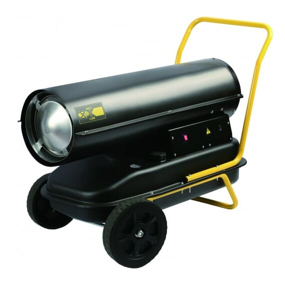 Дизельный нагреватель воздуха Zitrek BFG-50 50кВт 070-2805 представляет собой прочный отопительный прибор с колесами для мобильности и ручкой для удобства транспортировки.