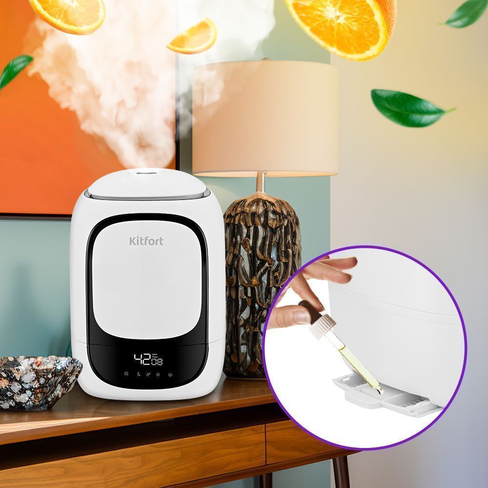 В данной модели предусмотрена ванночка для ароматизации воздуха с губкой, на которую добавляют эфирные или аромамасла. Достаточно пары капель, чтобы, помимо увлажнения воздуха, получить приятный аромат цитрусовых, чайного дерева, мяты, хвойного леса и др.