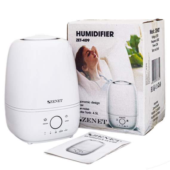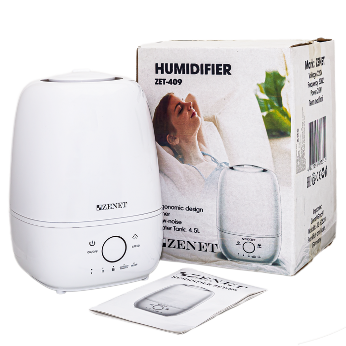Увлажнитель воздуха с ароматизацией Zenet ZET-409 на 4,5 л - климатический прибор, использующийся в первую очередь для повышения влажности воздуха в помещениях и поддержания оптимального уровня влажности, комфортный для органов дыхания.