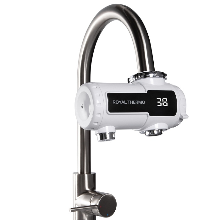 Небольшой проточный водонагреватель подходит для помещения любого размера. Он монтируется на действующий смеситель и абсолютно не занимает места в пространстве. Установленный на корпусе водонагревателя цифровой дисплей отображает температуру воды, позволяя контролировать степень нагрева с точностью до 1 градуса.