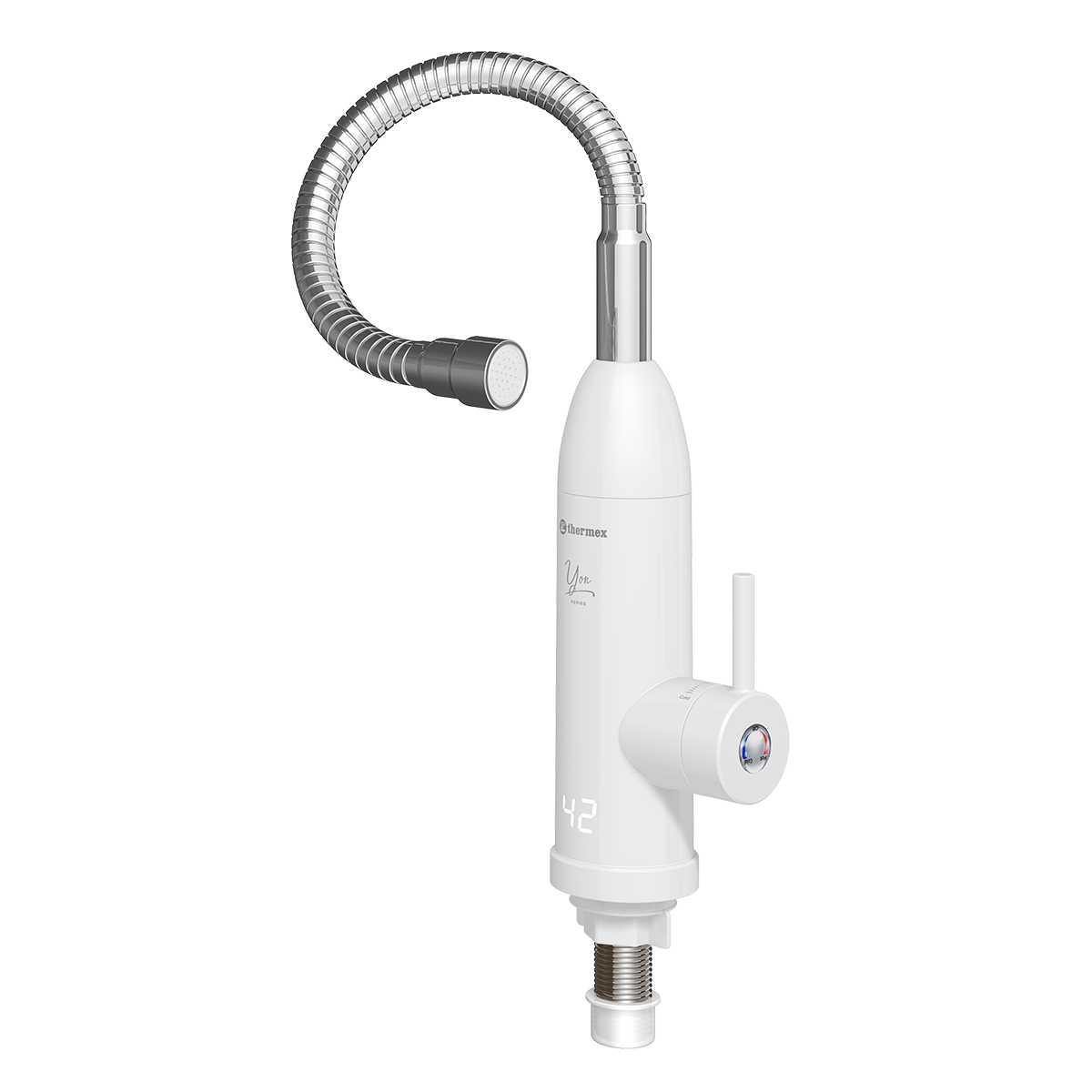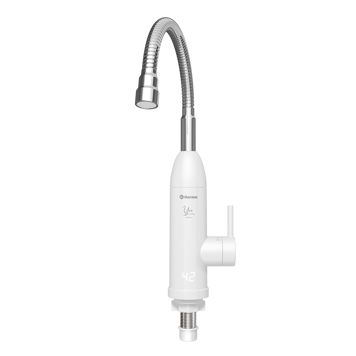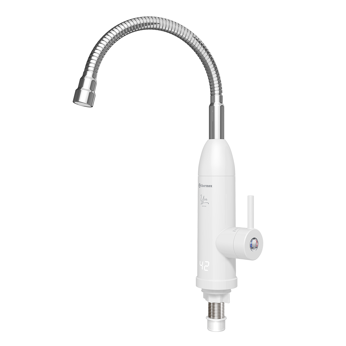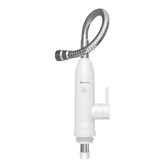 Проточный водонагреватель Thermex (Термекс) Yon 3000 выполнен в формате крана, который устанавливается на месте классического решения. Данное изделие подойдет для объектов, где полностью отсутствует система ГВС или происходят частые отключения. На корпусе предусмотрена индикация температуры для предотвращения травм со стороны пользователей.