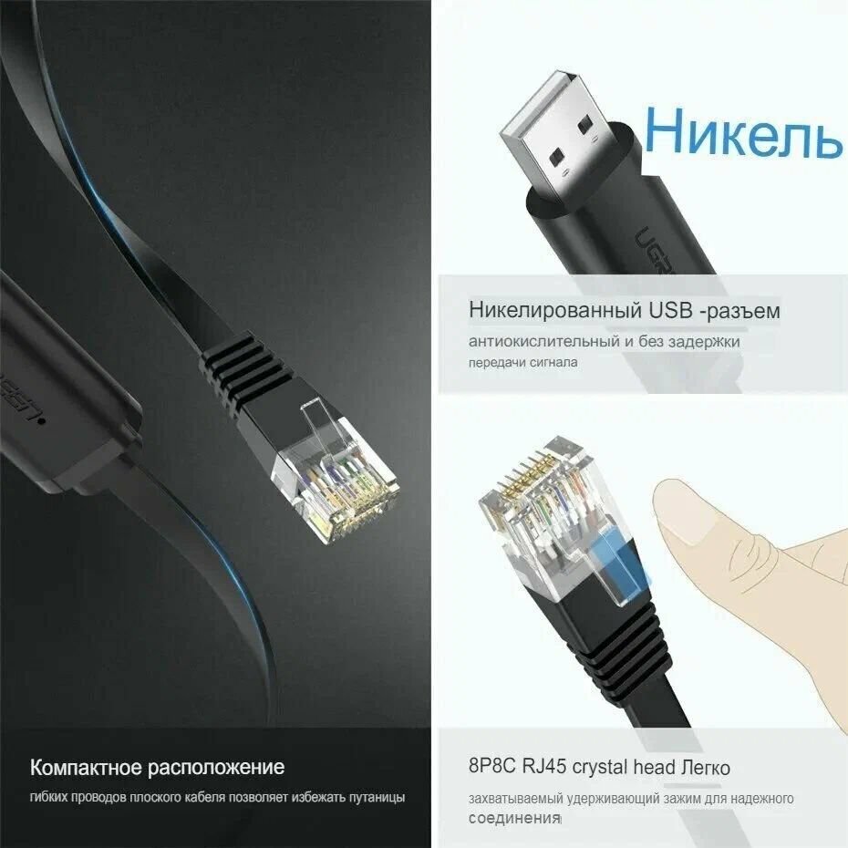 Кабель UGREEN CM204 50773 USB-A to RJ45 Console Cable 1.5m Black