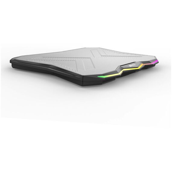 Привлекательной особенностью подставки является RGB подсветка. Светодиодная цветная лента огибает корпус подставки. Устройство выглядит в лучших традициях гейм-дизайна и понравится любителям игровых ноутбуков.