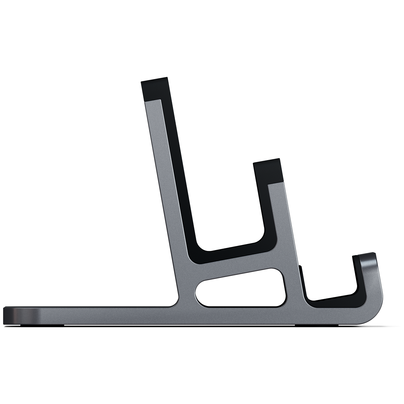 Satechi Dual Vertical Laptop Stand (ST-ADVSM) — универсальная и очень удобная подставка, которая подойдёт для большинства смартфонов и планшетов, а также ноутбуков с диагональю до 13 дюймов. Она изготовлена из высококачественного алюминия, благодаря чему прослужит вам невероятно долго. Конструкция подставки даёт возможность устанавливать её на любом типе поверхности без потери устойчивости. Также на внутренней стороне Satechi Aluminum Foldable Stand предусмотрены силиконовые накладки, благодаря которым ваше устройство будет надёжно закреплено на подставке и не поцарапается во время установки.