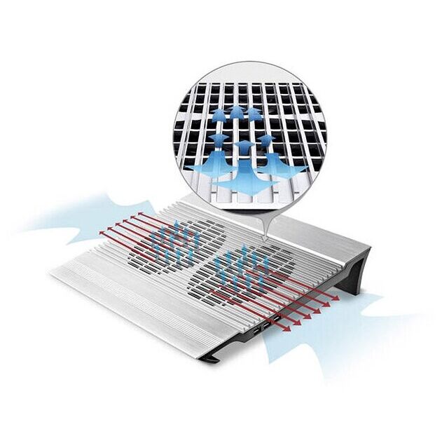 Подставка для охлаждения ноутбука DEEPCOOL N8 Silver (до 17", вентилятор 2x140мм, алюминий, 2xUSB) Retail box