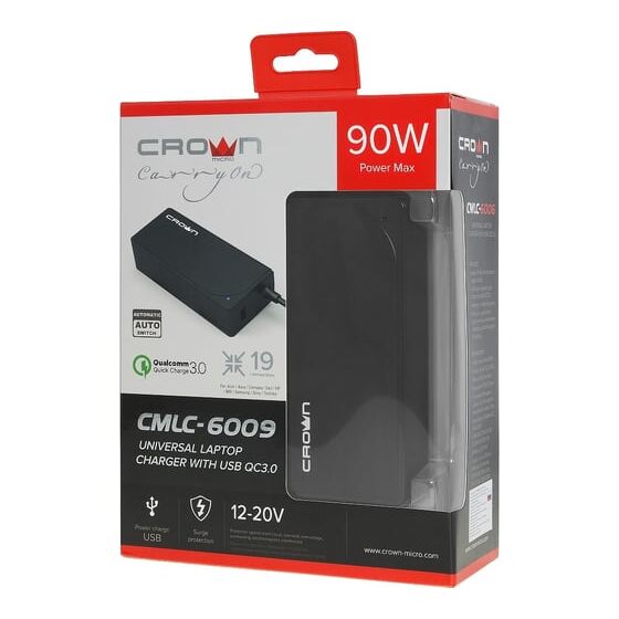 Универсальное зарядное устройство для ноутбука с USB QC3.0. В комплекте набор различных коннекторов, которые подойдут для большинства моделей ноутбуков. Наличие порта зарядки USB позволит одновременно зарядить и ноутбук и смартфон (поддерживает быструю зарядку устройств QC 3.0).