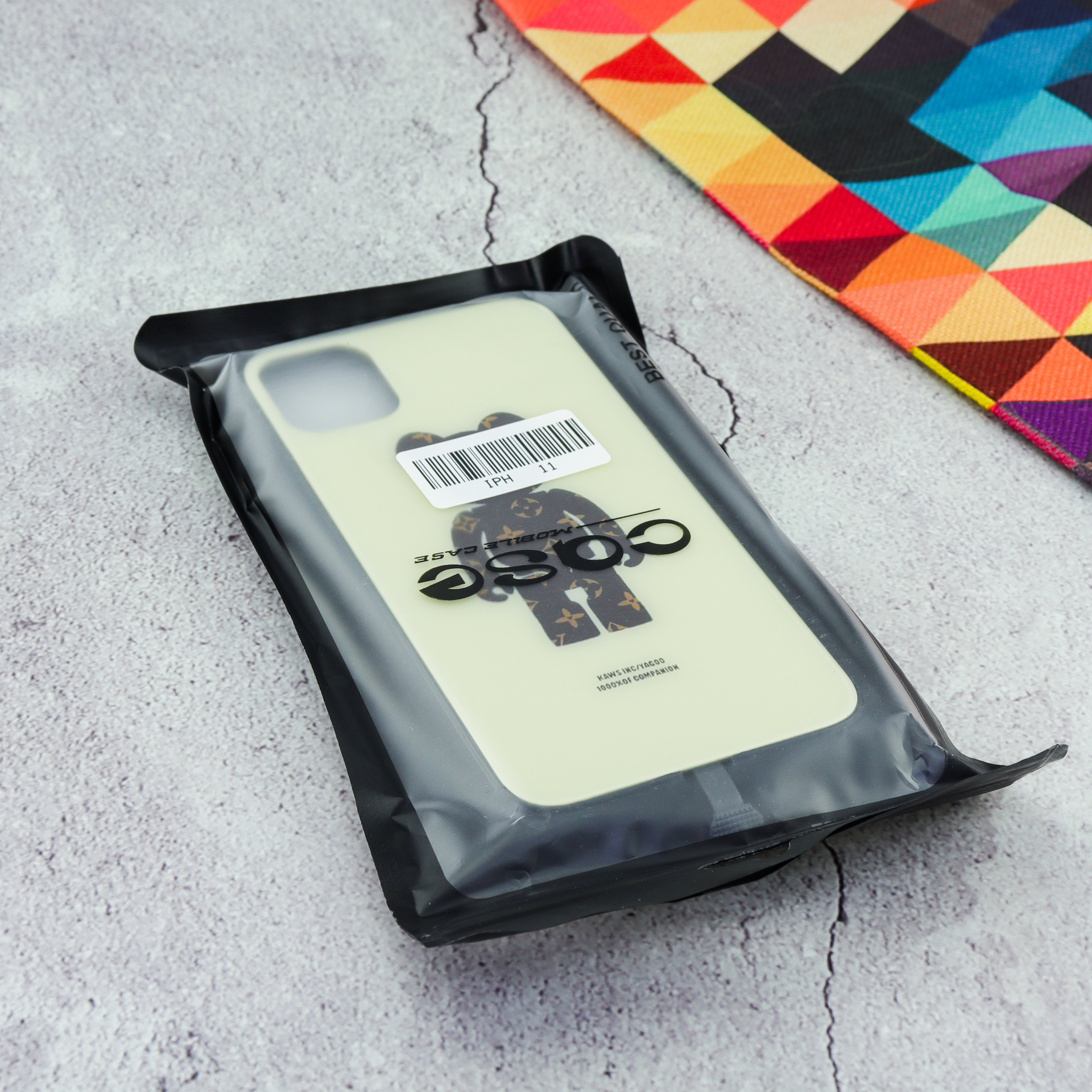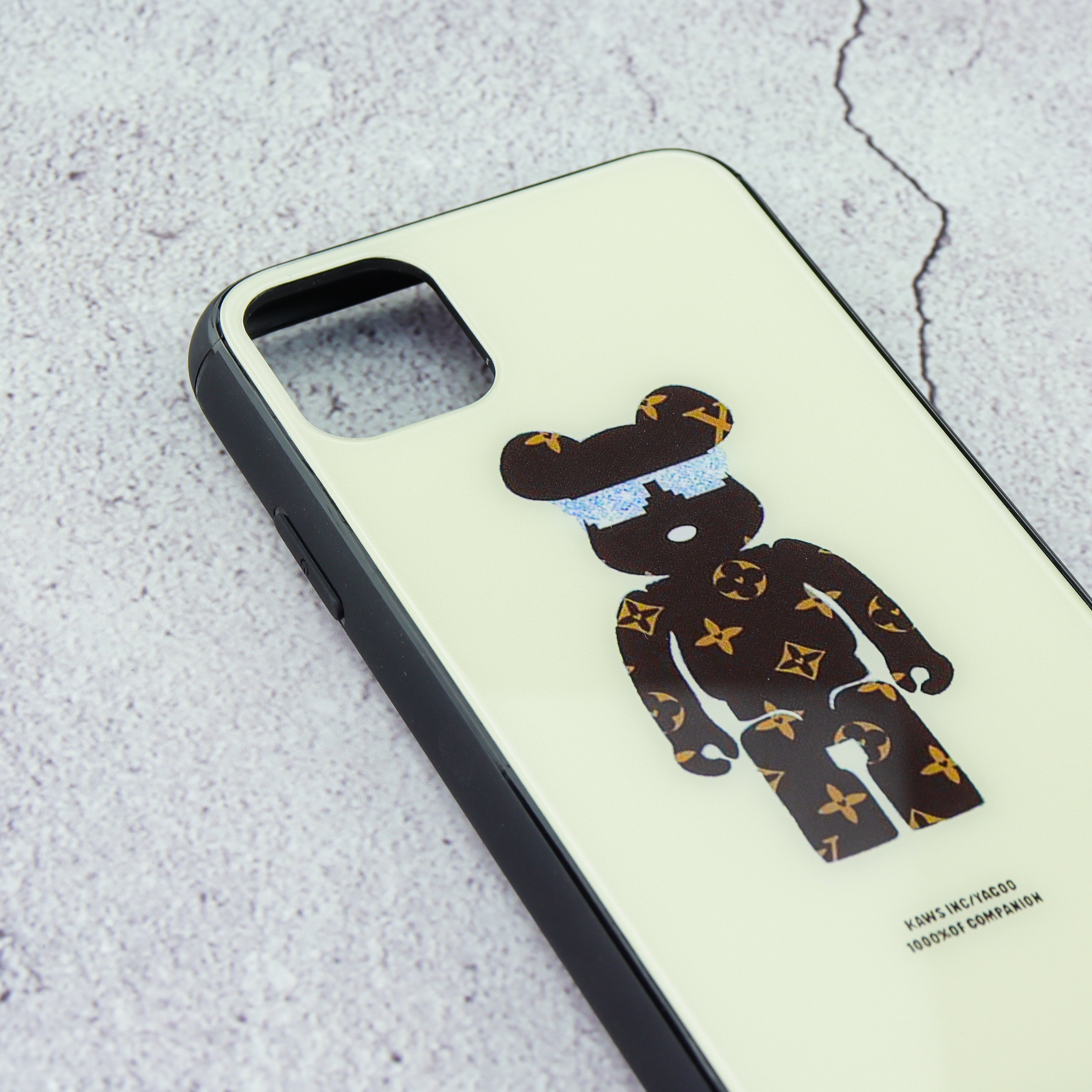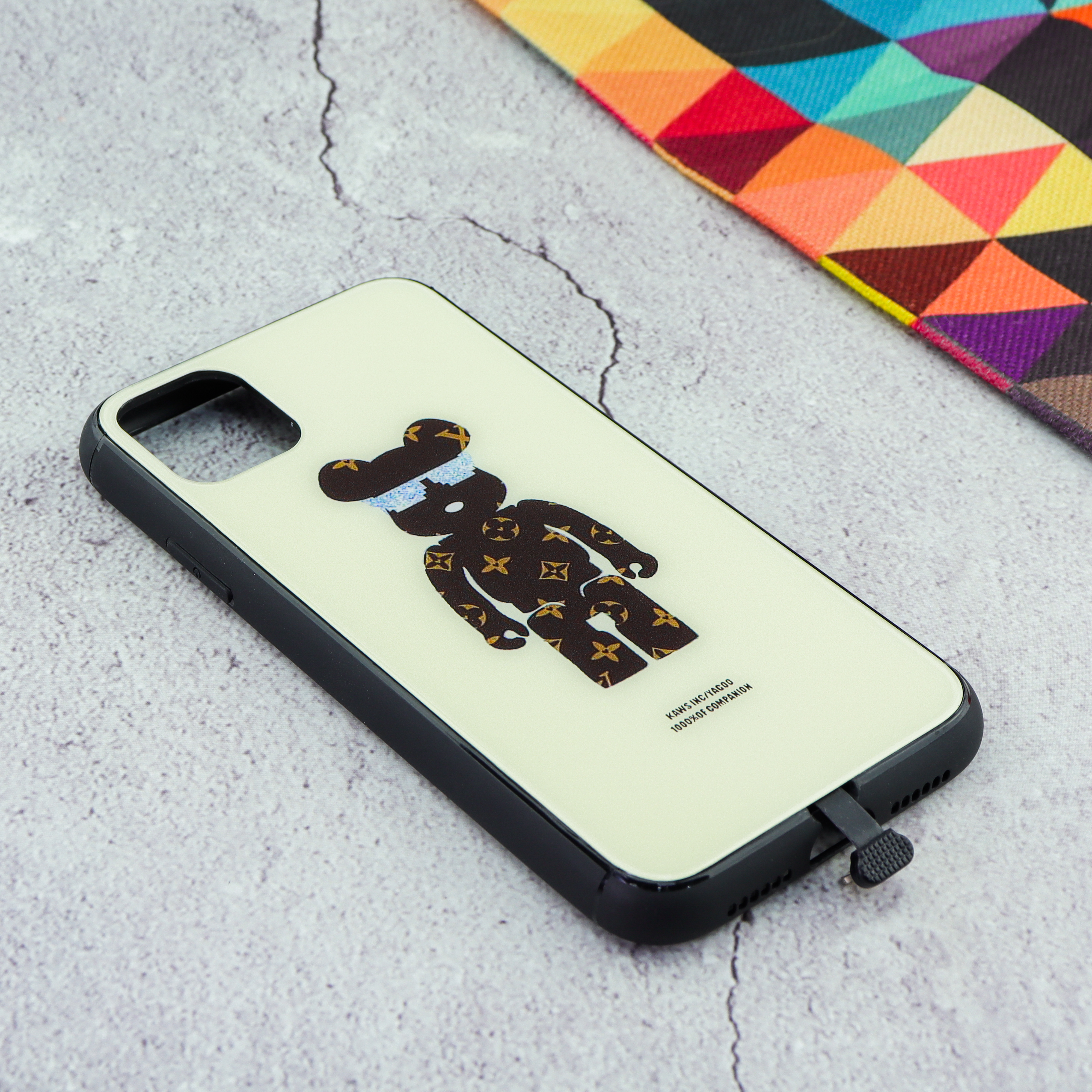 Чехол для iPhone 11 BEARBRICK в очках флуоресентный рисунок белый