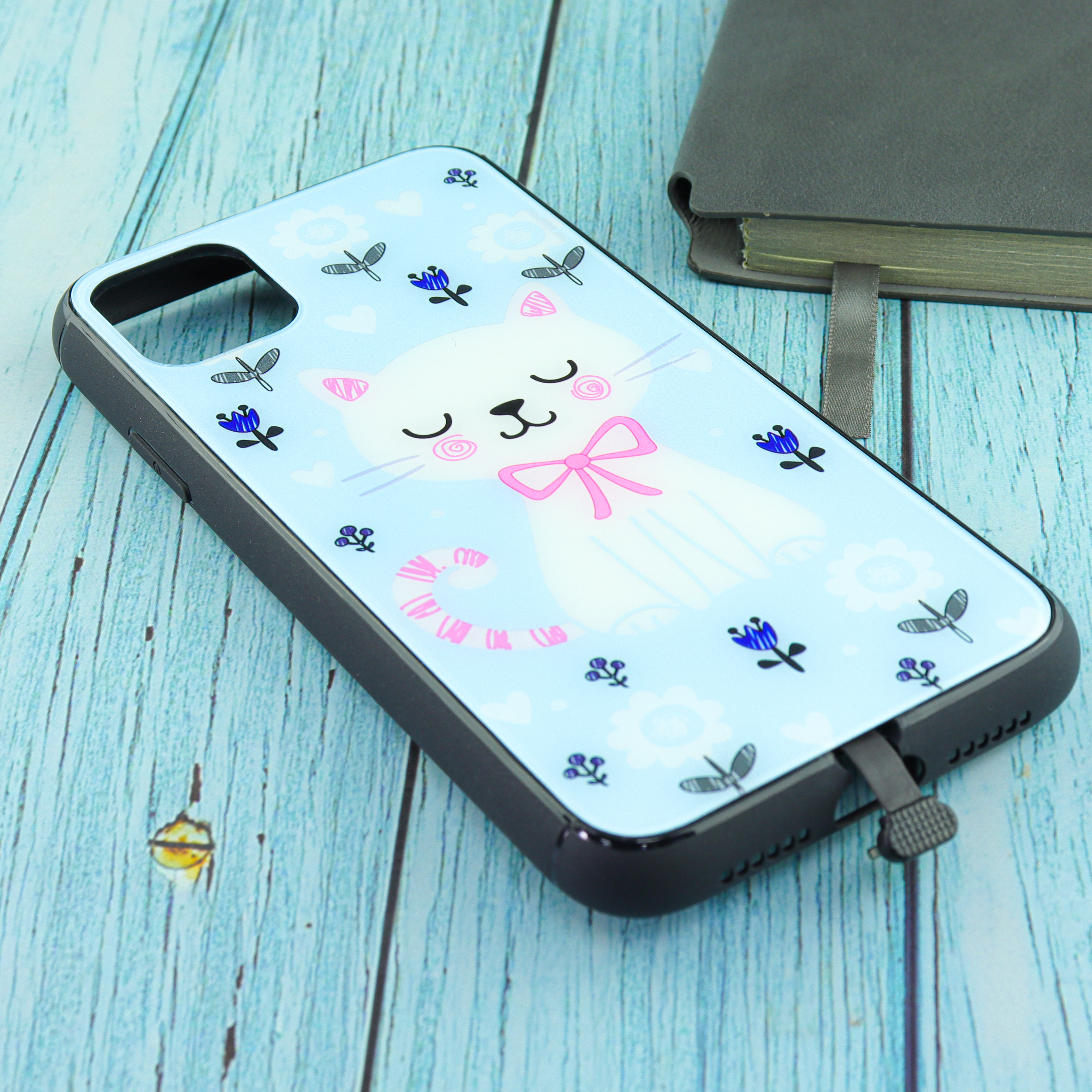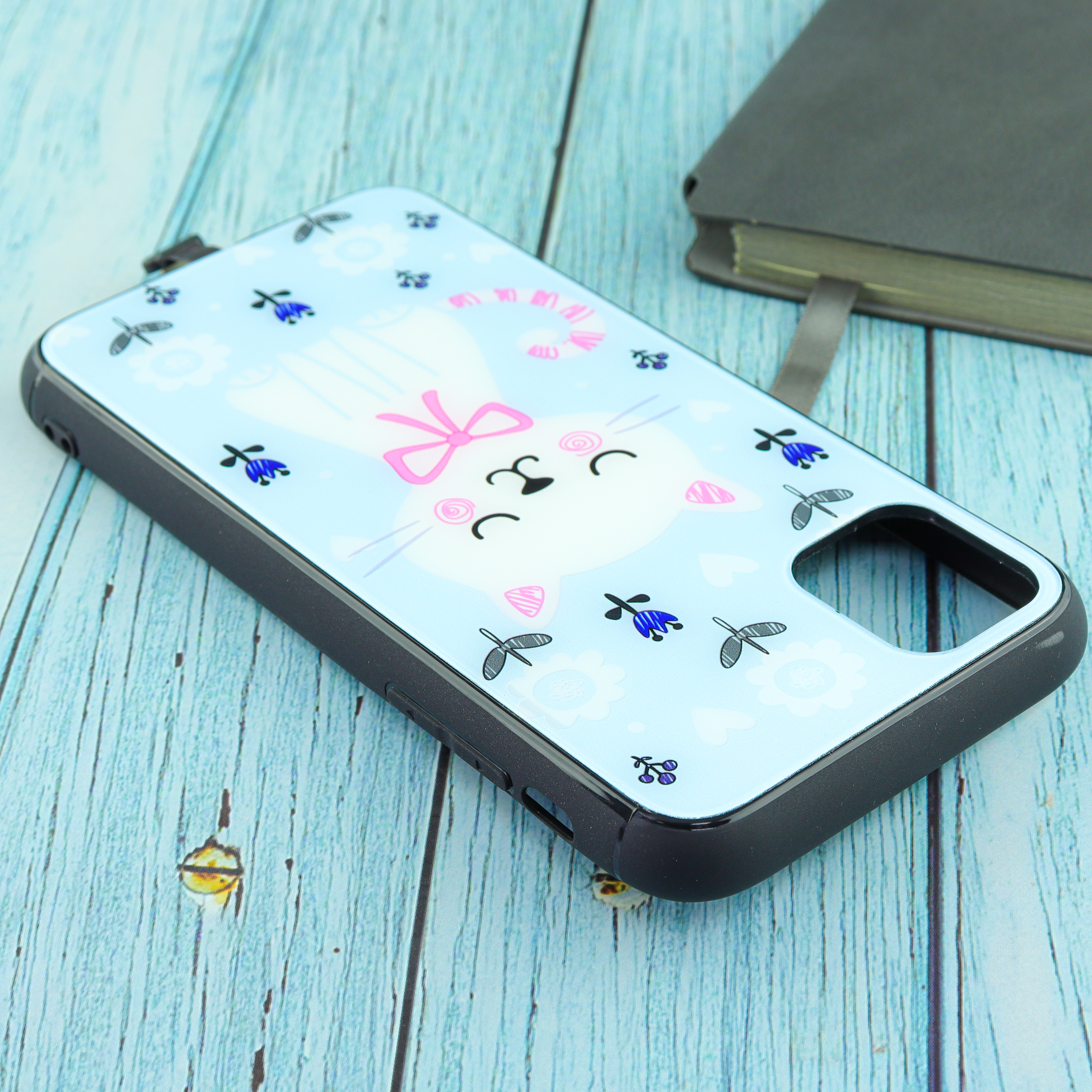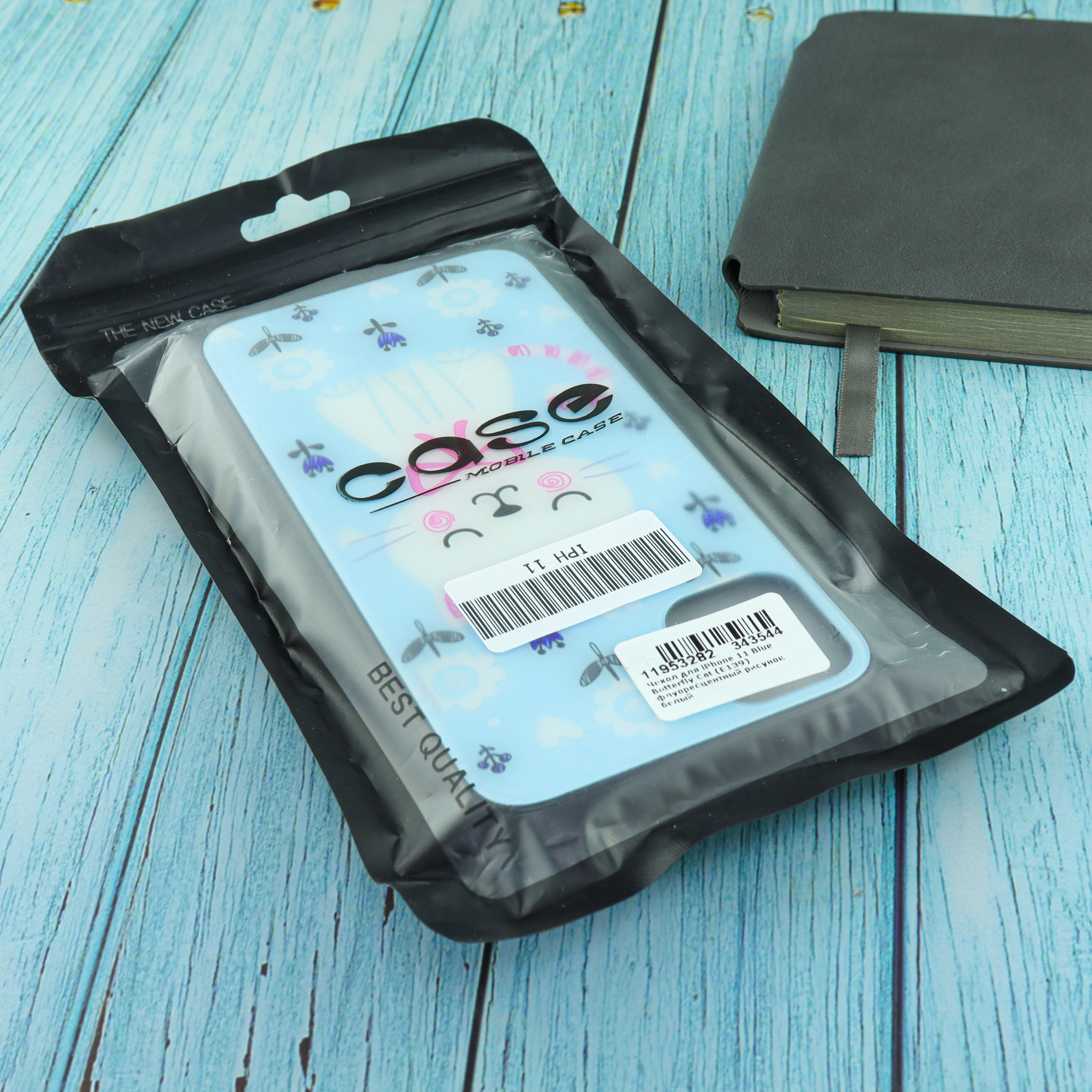 Чехол для iPhone 11 Blue Butterfly Cat (E139) флуоресцентный рисунок белый