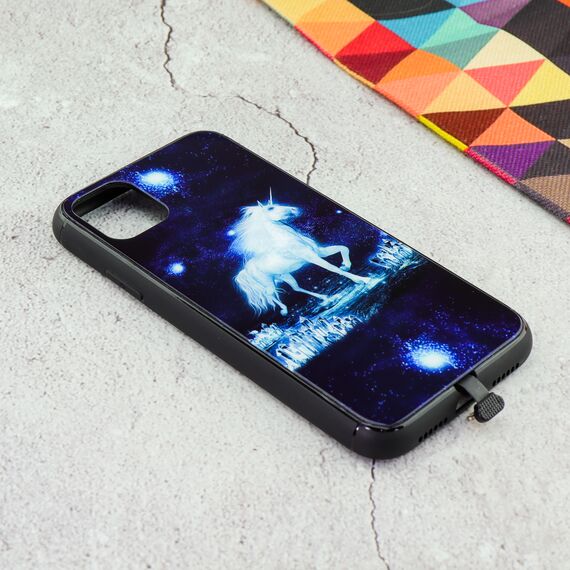 Чехол для iPhone 11 Единорог флуоресентный рисунок чёрный