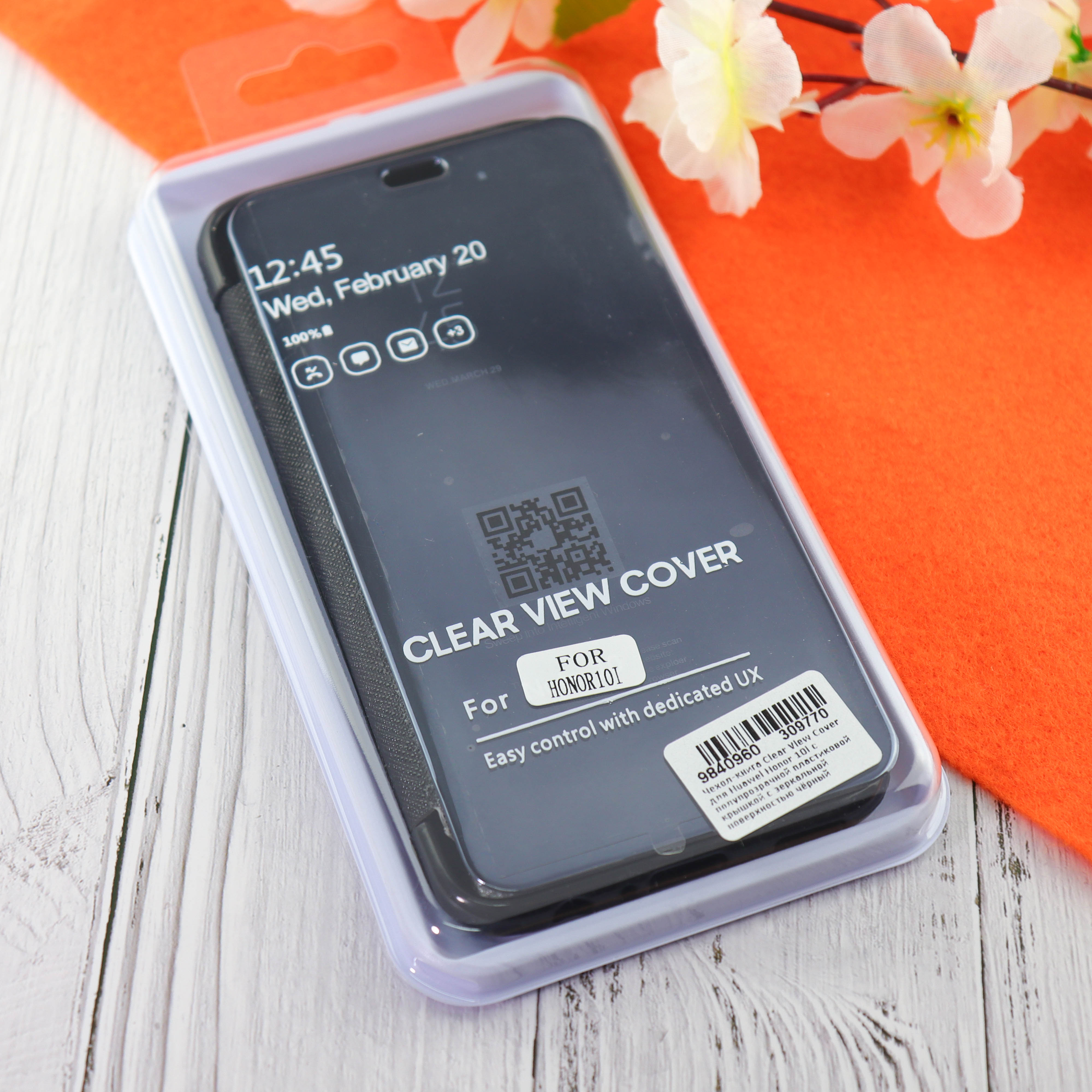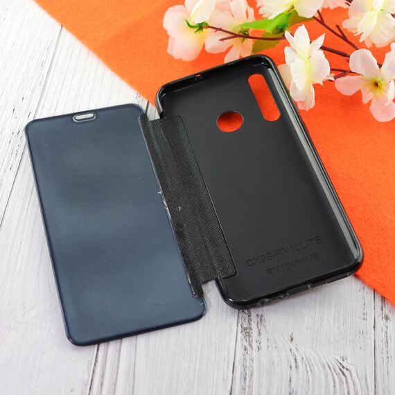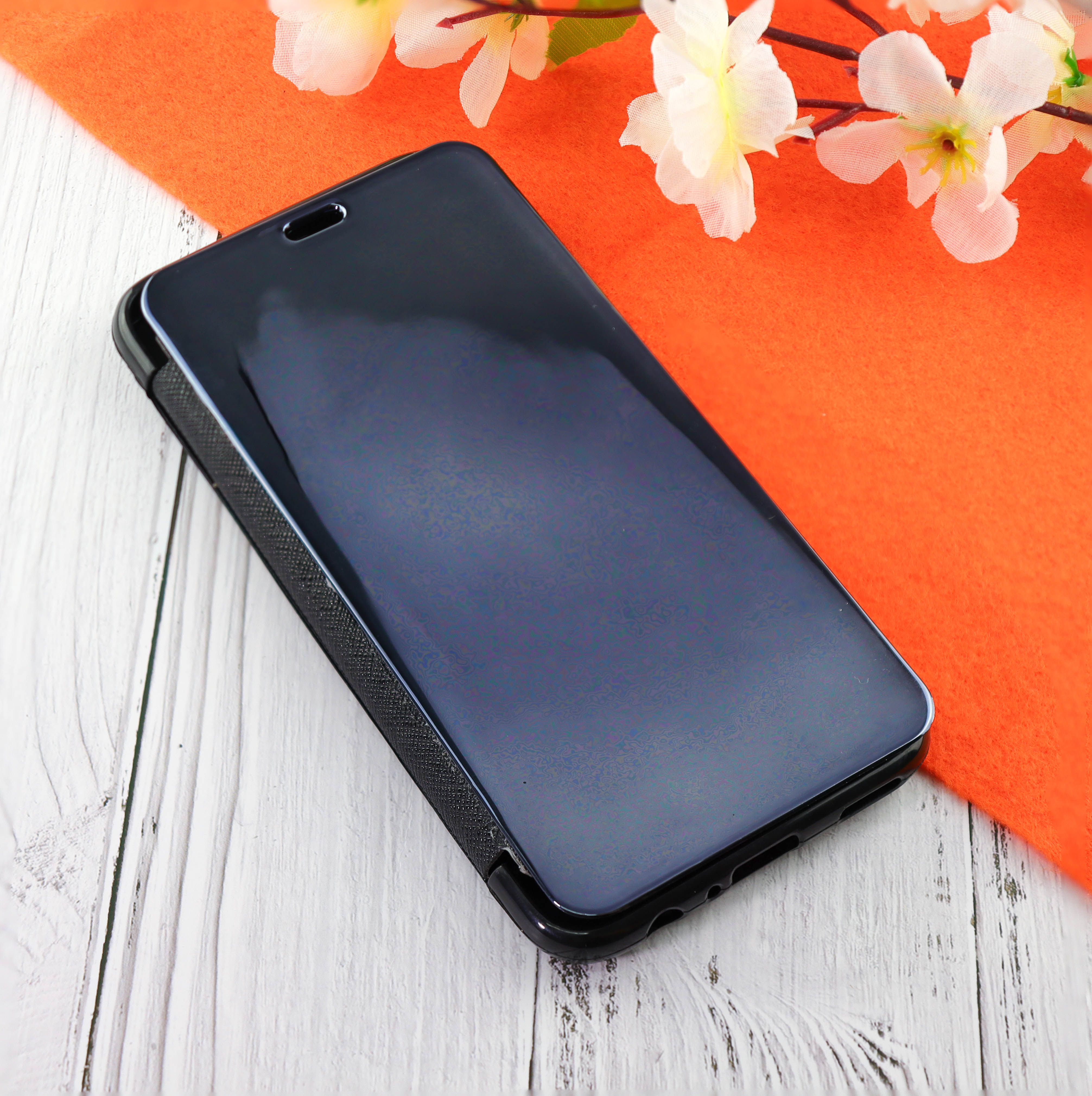 Чехол-книга Clear View Cover для Huawei Honor 10i с полупрозрачной пластиковой крышкой с зеркальной поверхностью чёрный