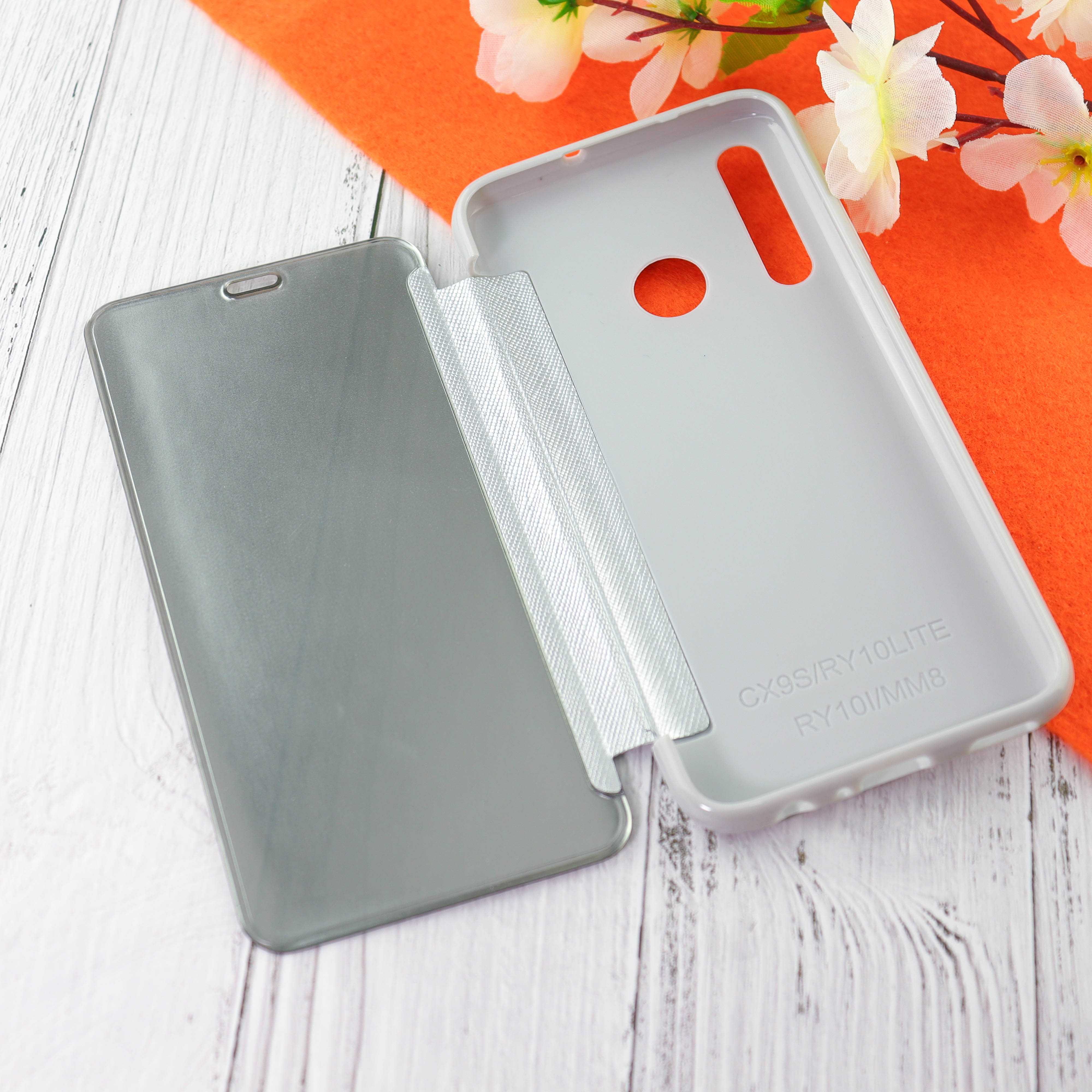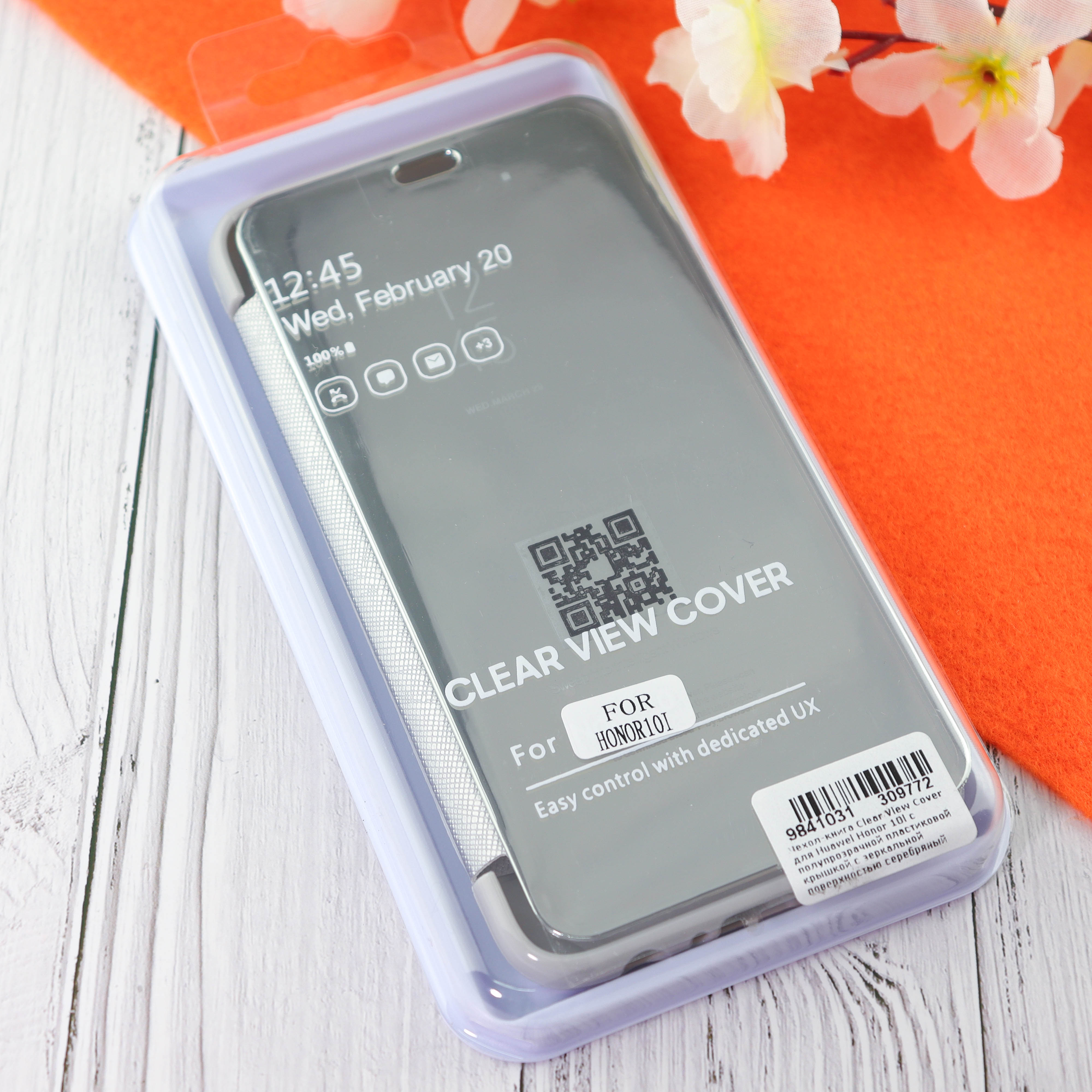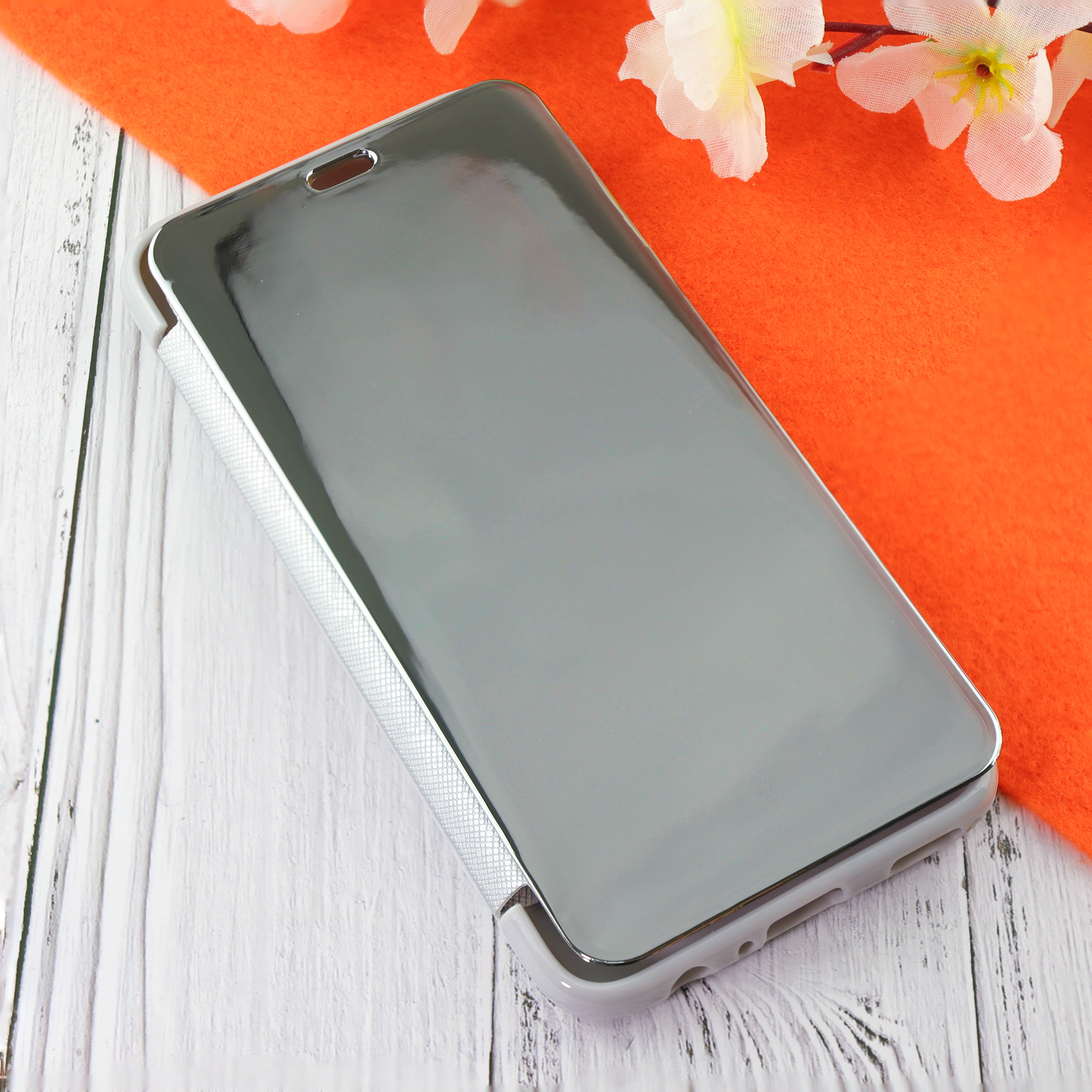 Чехол-книга Clear View Cover для Huawei Honor 10i с полупрозрачной пластиковой крышкой с зеркальной поверхностью серебряный