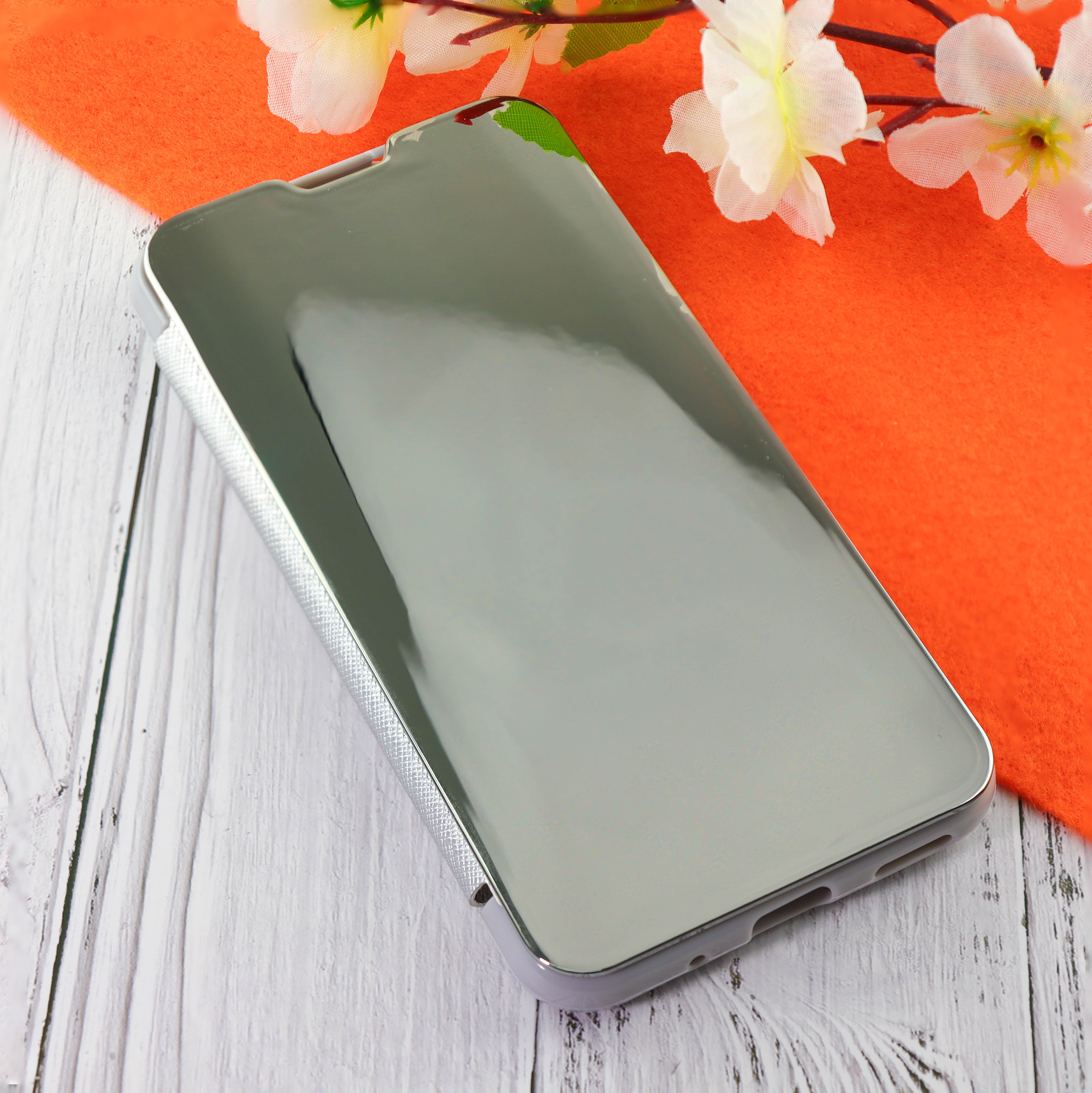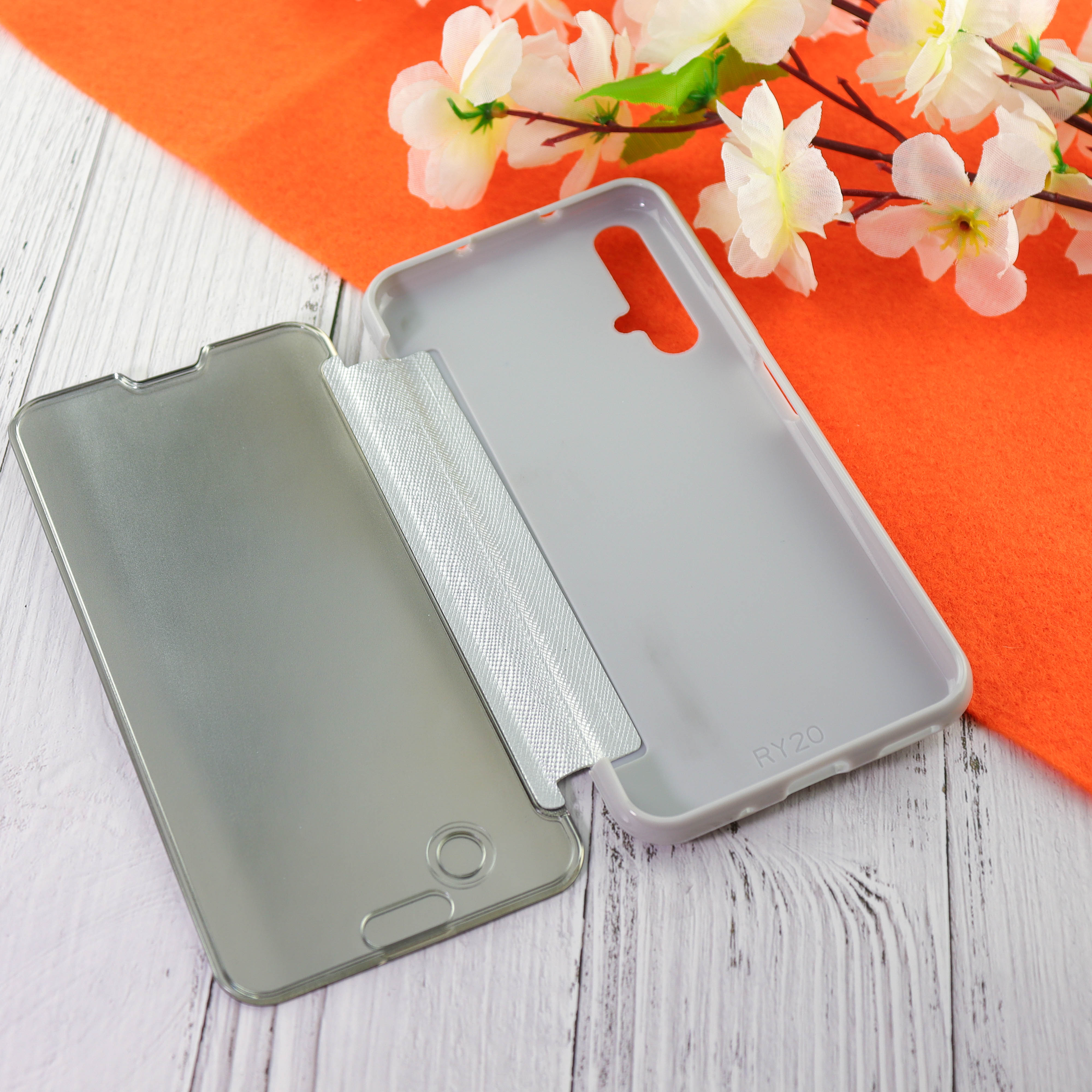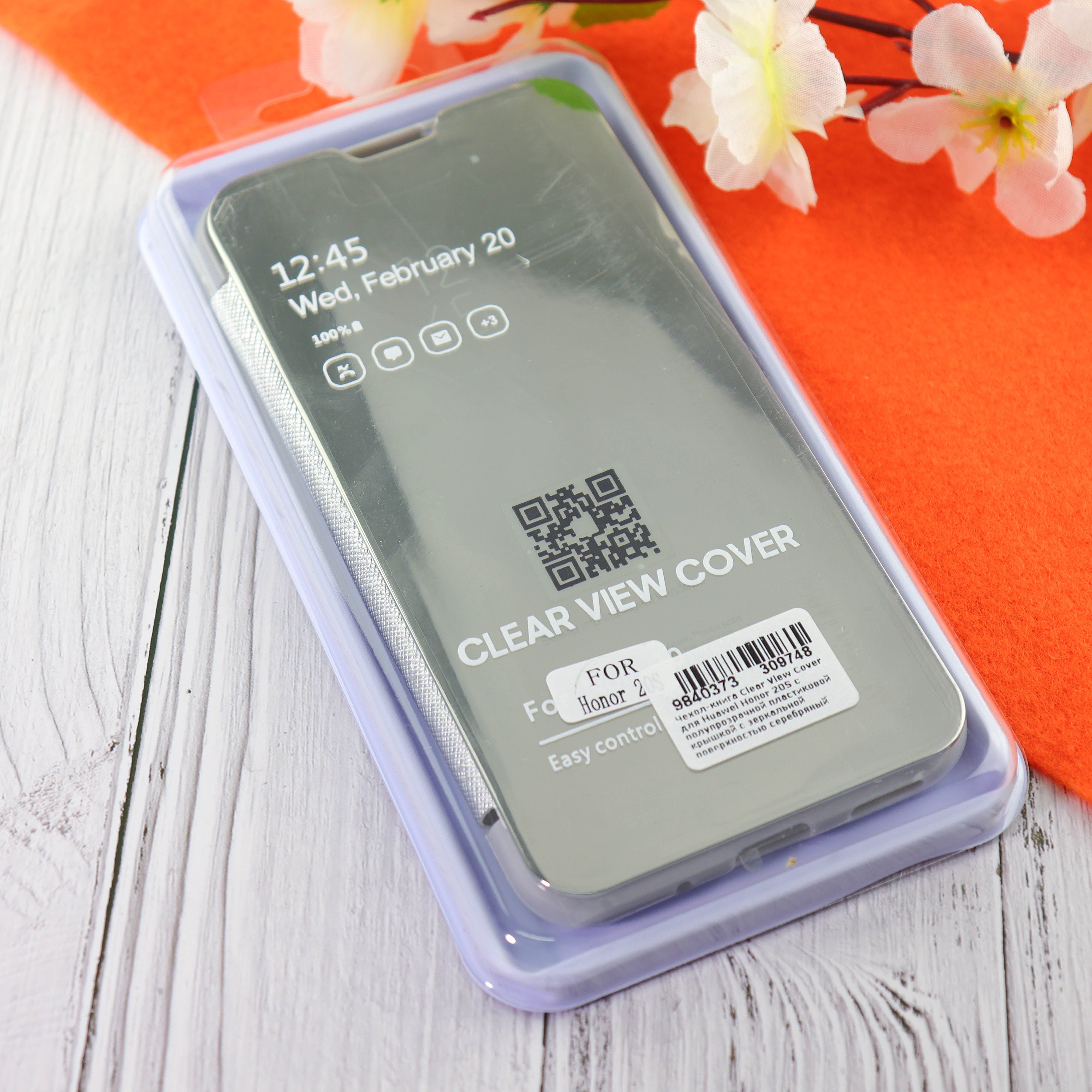 Чехол-книга Clear View Cover для Huawei Honor 20S с полупрозрачной пластиковой крышкой с зеркальной поверхностью серебряный